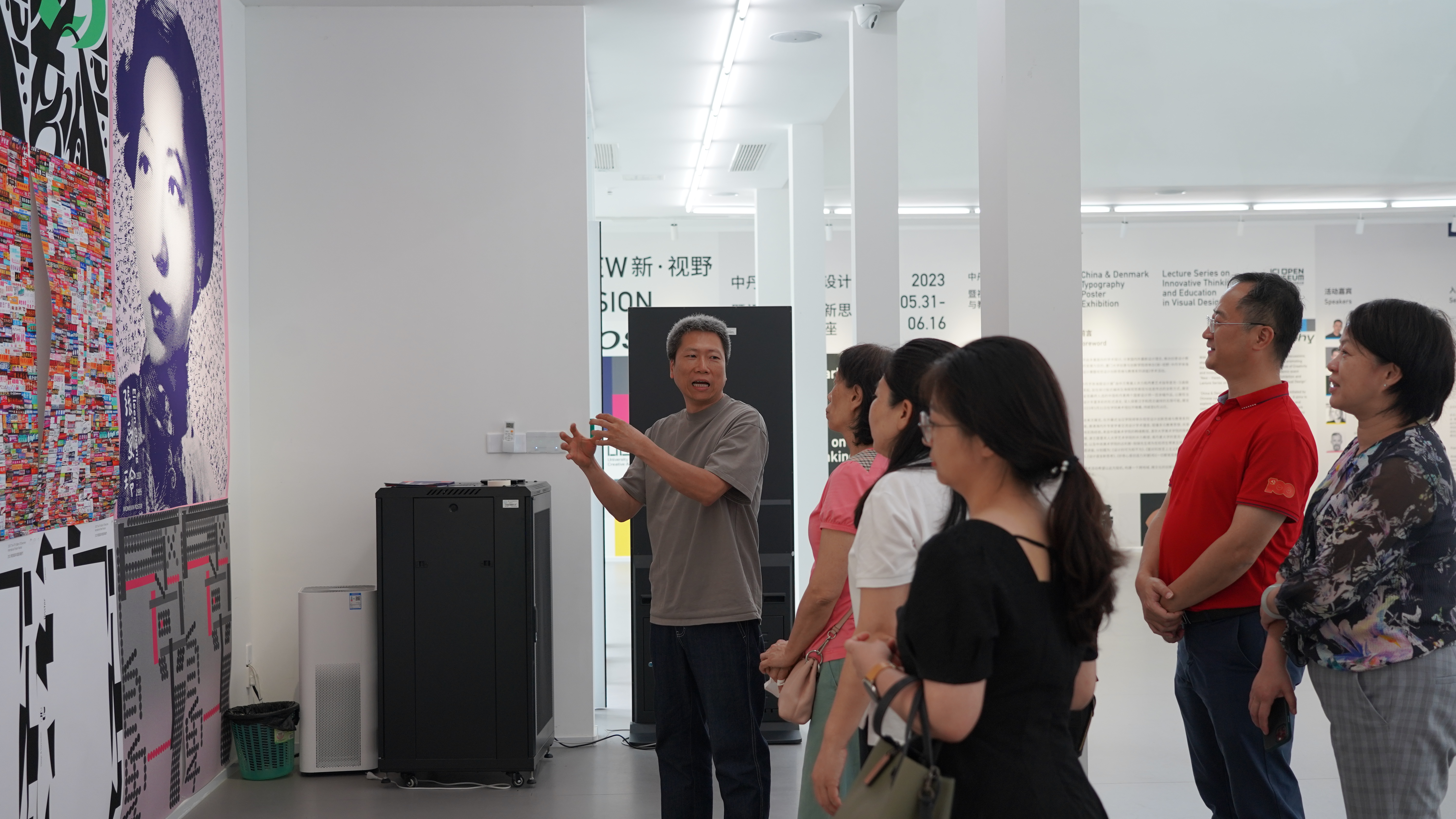 创意与创新学院党总支书记王艺带领大家参观学院美术馆,对馆内陈列的设计作品进行详细的讲解,并介绍了学院美术馆的设计思路与历次重要展览。一行人还参观了学院的创意工作室,由工作室的同学介绍图书制作流程、3D打印以及激光切割技术,参观师生切身感受到了艺术与技术的互补与融合。
