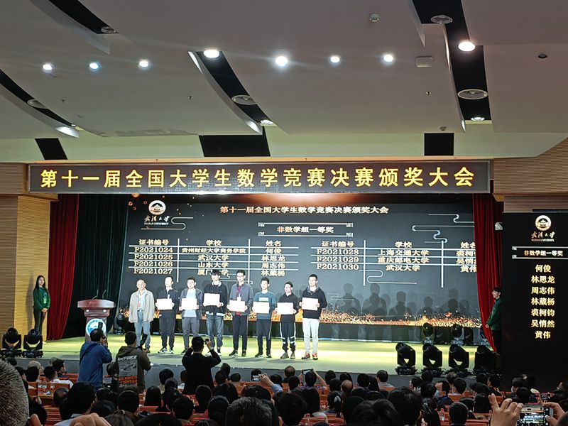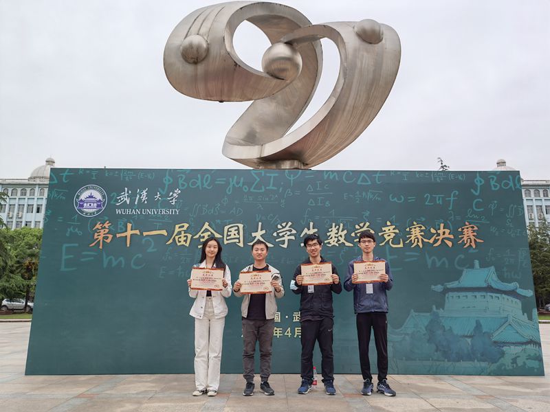 热烈祝贺我校学子在第十一届全国大学生数学竞赛中喜获佳绩!2021417-19日,第十一届全国大学生数学竞赛决赛在武汉大学举行。在学院的精心组织和指导老师的悉心指导下,我校9名学生共获得一等奖2个,二等奖3个,三等奖4个。