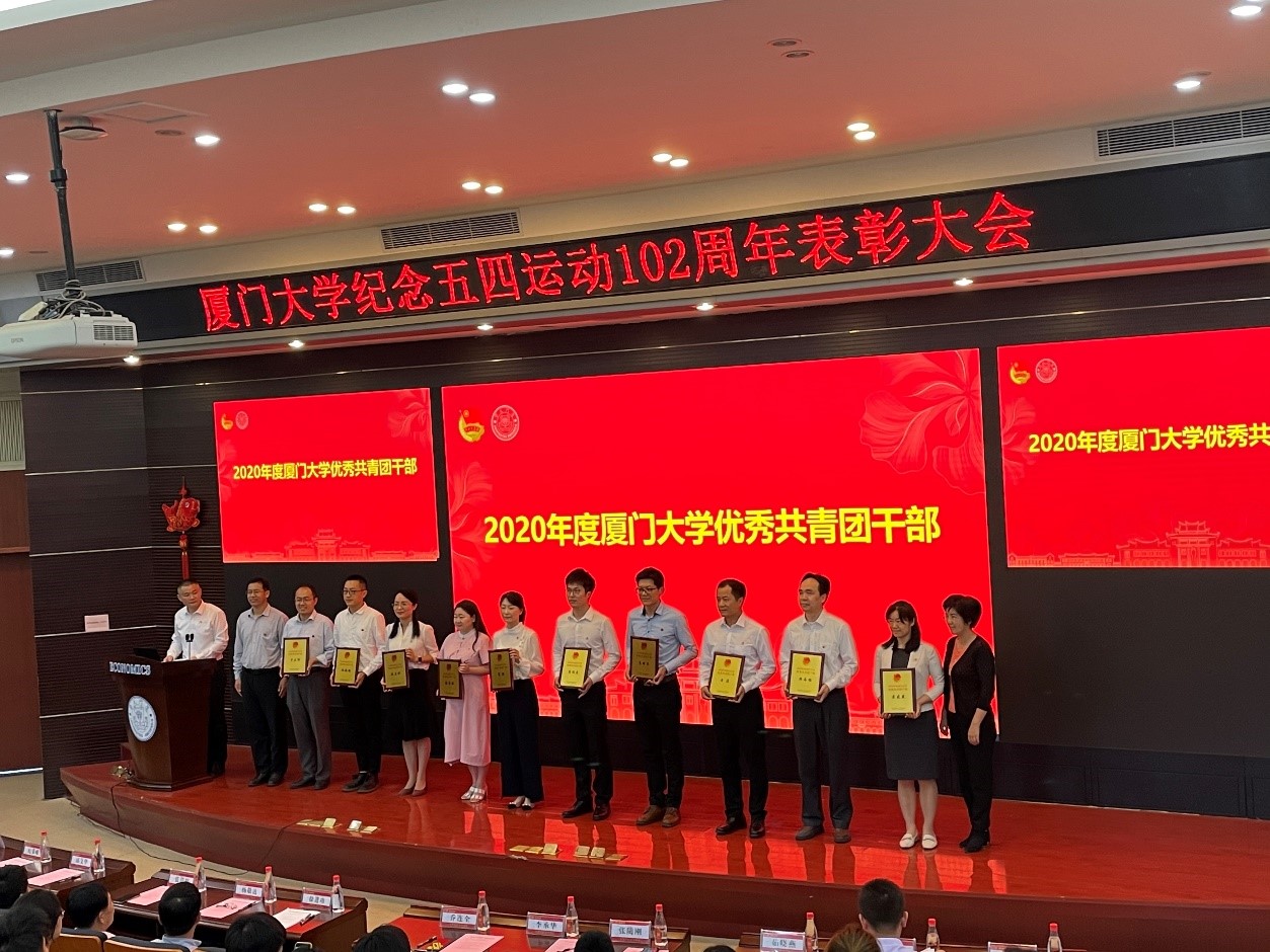 4月30日下午,“青春心向党 奋进新百年”厦门大学纪念五四运动102周年表彰大会在经济学院报告厅举行。校党委副书记徐进功、校关工委副主任杨敬达出席大会。大会总结了2020年度学校共青团工作情况,对一年来我校在共青团工作中表现突出的集体与个人进行了表彰,公布了厦门大学首批“囊萤星火青年讲师团”首批成员名单,开展了“牢记使命 科研报国——生物考古实证中华源流史,增强民族凝聚力”主题团课。