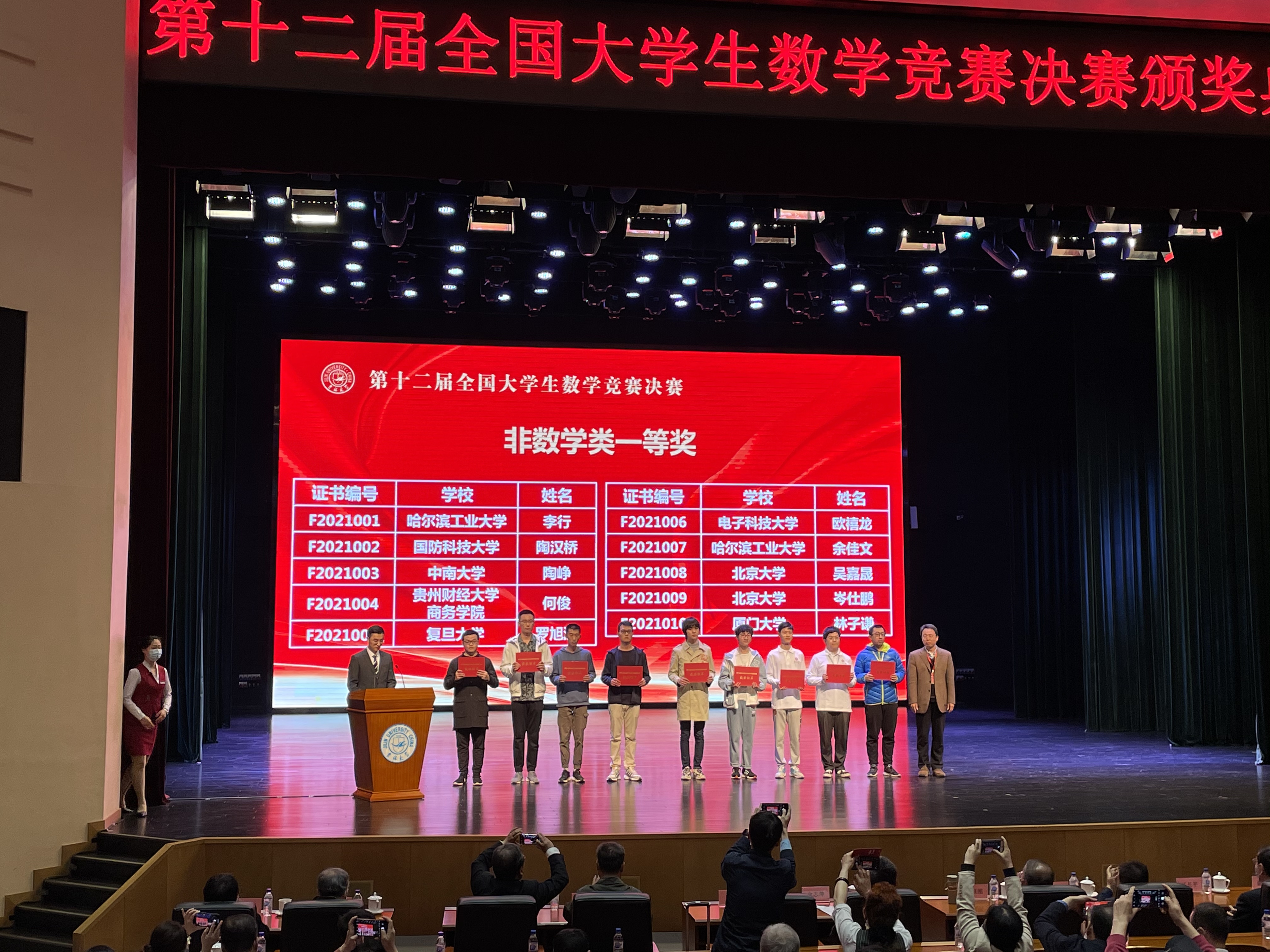 5月14日至16日,第十二届全国大学生数学竞赛决赛在吉林大学举行。我校十名本科生参赛并获得一等奖2项,二等奖6项,三等奖2项。