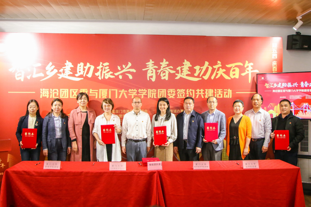 海沧团区委与厦门大学学院团委签署共建框架协议,数学科学学院团委书记于正伟代表学院团委参加签约,党委副书记丁昌利担任见证嘉宾。今后双方将在青年思想引领、乡村人才振兴、调查研究、文化振兴、产业振兴、法治乡村建设、生态振兴、旅游管理、完善乡村治理等方面共建合作。