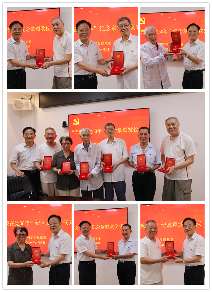 荣获“光荣在党50年”纪念章的老党员代表,既有院系老领导,也有曾经的一线教师、科研骨干和党政管理人员,他们都是在学院百年发展历程中辛勤耕耘的代表。退休支部书记李再成表示,获颁纪念章使老党员深切感受到以习近平同志为核心的党中央的关怀和温暖,进一步增强了荣誉感、归属感、使命感,老党员要离岗不离党、退休不褪色,继续发挥好党员先锋模范作用,团结带动广大退休教职工为学校各项工作做贡献。
