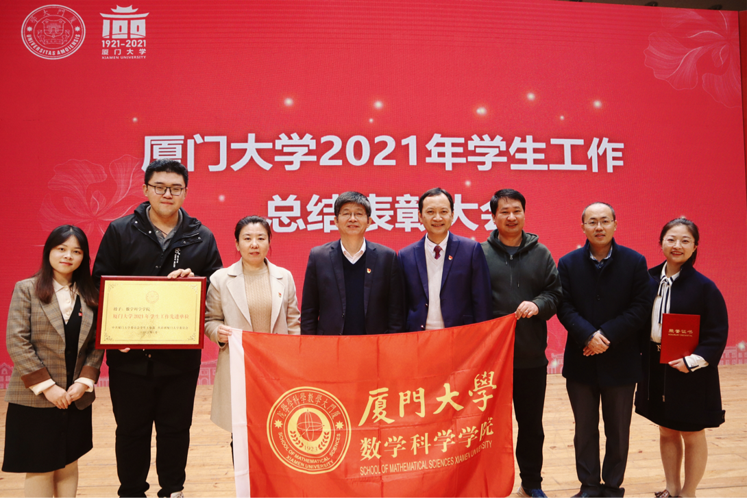 2021年,数学科学学院以习近平新时代中国特色社会主义思想为指导,深入学习贯彻习近平总书记致厦门大学建校100周年重要贺信精神、党的十九届六中全会精神,围绕“两个一百年”谋篇布局,隆重庆祝厦门大学百年校庆、扎实开展党史学习教育、全面落实疫情防控工作。在校院两级党委的领导和学生处、校团委的指导下,紧紧围绕立德树人根本任务和“双一流”建设目标,落实“三全育人”思政工作机制,淬炼景润品牌。学院各项工作稳中求进,有序开展,取得良好的成效。2022年,学院学生工作组将继续不忘初心,加强学生思想政治引领提升学生党建质量;守正创新,加强“景润先锋”学生工作品牌体系建设;因势而新,围绕党的二十大、“百年院庆”等中心工作,锐意进取、埋头苦干,持续提升学院思想政治教育水平,在夯实内功中推动学生工作内涵式发展,在强化使命担当中为学校“双一流”建设贡献数学力量。