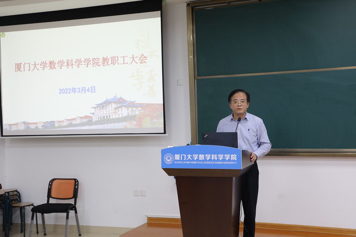 会上,黄宝秋书记从履行党建责任、落实重点任务、思想政治工作等三个方面通报2021年学院党建总体情况,分析了工作中存在的主要问题,并结合学校新学期工作布置会精神提出下一步工作思路和重点。他指出,过去一年,在校党委的领导下,学院党委以庆祝建党百年和建校百年为契机,将党史学习教育贯穿政治建设和党建工作始终,推动学院各项工作基础更加扎实、发展态势更加喜人。他强调,2022年是新时代新征程中具有特殊重要意义的一年,我们党将召开二十大,2022年也是推进“十四五”规划实施的关键之年,是新一轮“双一流”建设的正式开启之年。我们要以迎接学习宣传党的二十大为主线,坚持以习近平新时代中国特色社会主义思想为指导,深入学习贯彻党的十九大和十九届历次全会精神,认真贯彻落实习近平总书记关于教育的重要论述,深刻领悟“两个确立”的决定性意义,增强“四个意识”、坚定“四个自信”、做到“两个维护”,更好把握和运用党的百年奋斗历史经验,弘扬伟大建党精神,进一步解放思想、实事求是、坚定信心、守正创新,准确把握时代大势,聆听师生心声,回应现实需要,主动服务新时代国家加强基础学科研究及人才培养战略,团结带领全院师生踔厉奋发、勇毅前行,以更好面貌更好业绩迎接党的二十大胜利召开。要继续坚持用习近平新时代中国特色社会主义思想铸魂育人,坚持和加强党的领导,深化全面从严治党,推动党建与思政工作深度融合,以高质量党建引领高质量发展。要慎终如始抓好常态化疫情防控工作,确保师生健康安全。