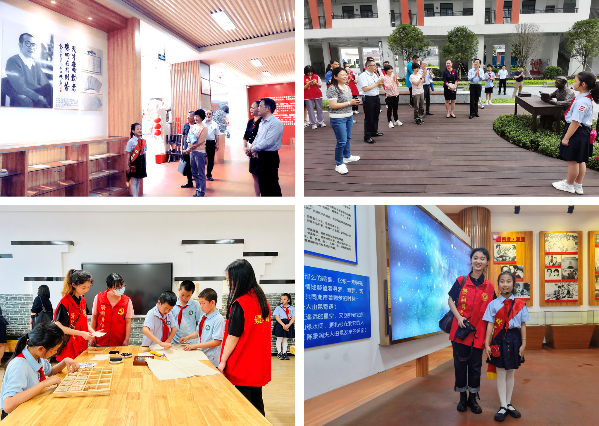 在走访调研环节,黄宝秋带领学院师生前往同样具有百年历史、陈景润院士曾经就读过的三明市陈景润实验小学参访交流,三元区教育局局长谢映华、陈景润实验小学校长潘玲陪同参访。潘玲介绍了学校的办学理念与育人模式,学校小小讲解员在校史馆为师生介绍百年校史,以及陈景润院士在学校留下的求学足迹;红领巾志愿讲解队在富兴校区讲解校园文化,展示丰富多彩的素质拓展课程。在交流中,双方表示要珍惜校地情缘,弘扬景润精神,通过大手拉小手推动共建合作,激励一代又一代景润少年、景润青年奋发前行,共同谱写厦大数学学科与山区基础教育高质量发展新篇章,共筑数学强国梦。