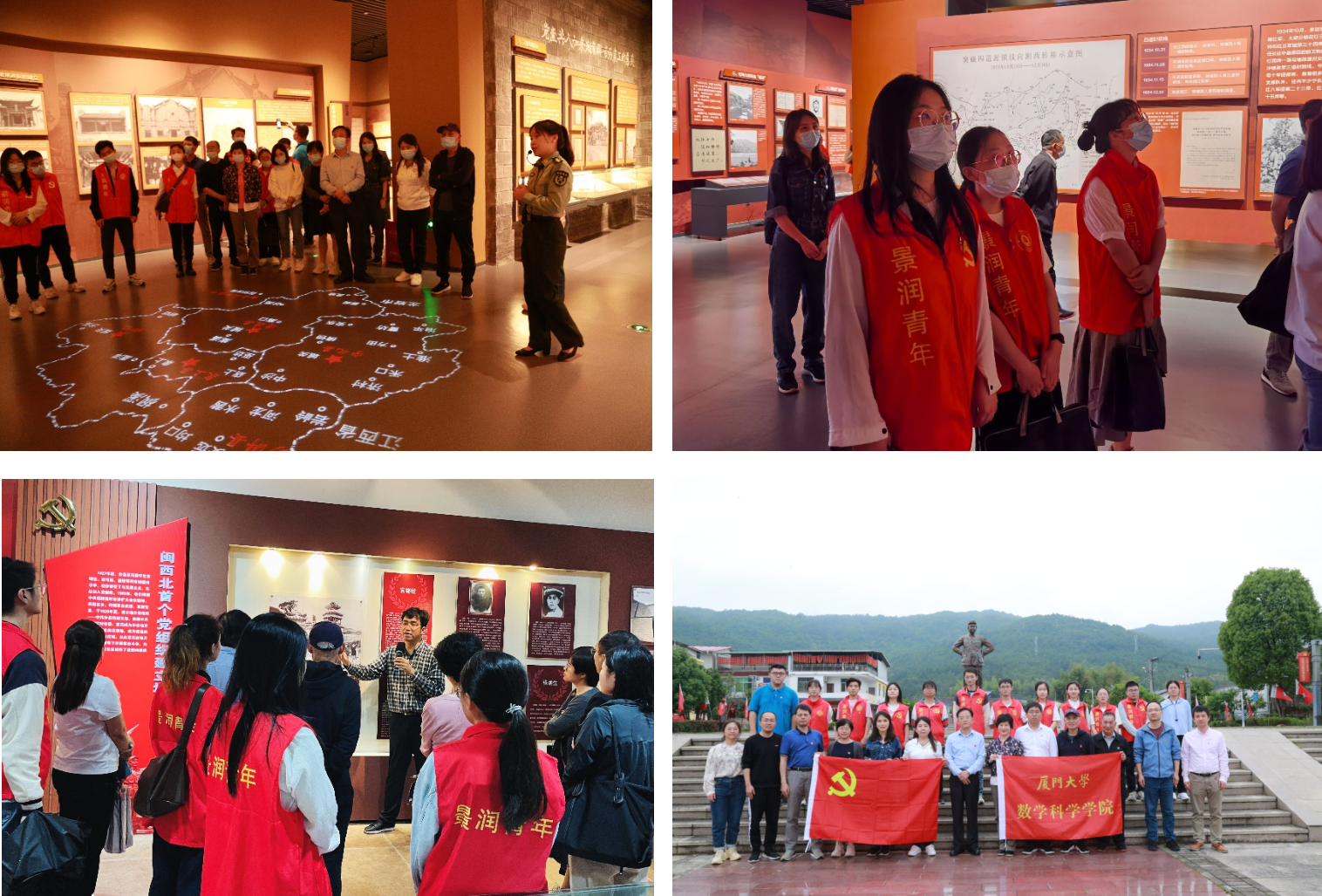 为迎接党的二十大召开,进一步深化学院党史学习教育成果,强化思想引领、筑牢信念之基、激发奋进力量,5月20日至22日,数学科学学院党委组织中心组成员、关工委及团委负责人、部分系级班子成员、党支部书记和师生党员代表前往三明市开展“喜迎二十大 建功新时代”——“数院先锋 红色领航”学习教育活动。校关工委副主任、基层党建工作联络员郑冰冰,院党委书记黄宝秋、副书记丁昌利,副院长金贤安、朱玉峻,院关工委副主任林建华,院办公室主任吴纲民,院团委书记于正伟、副书记陈淑铌等参加。