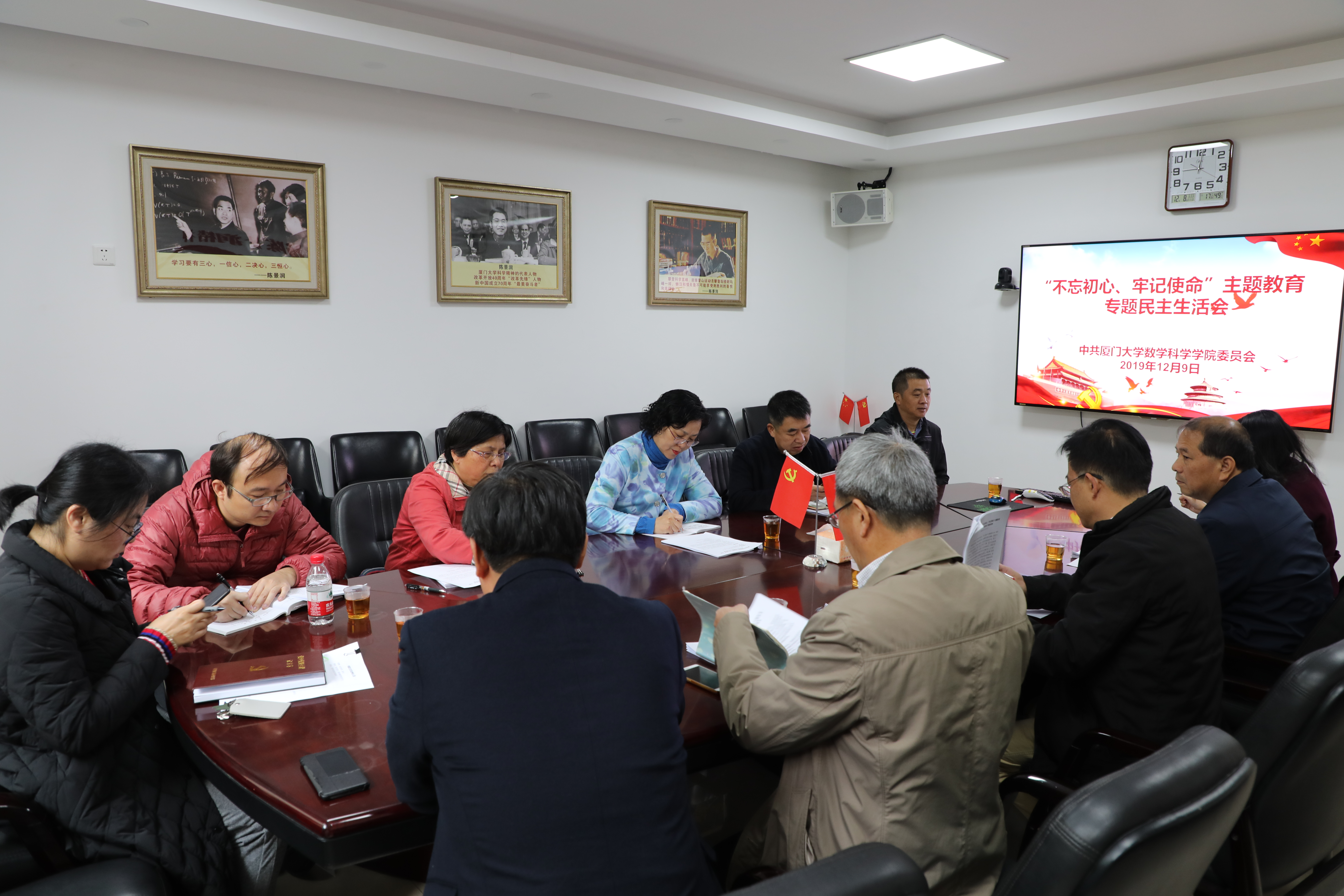 按照校党委关于召开“不忘初心、牢记使命”专题民主生活会的统一部署和要求,12月9日上午,数学科学学院领导班子召开主题教育专题民主生活会。会议聚焦“不忘初心、牢记使命”主题,紧扣学习贯彻习近平新时代中国特色社会主义思想主线,围绕理论学习有收获、思想政治受洗礼、干事创业敢担当、为民服务解难题、清正廉洁作表率的目标,对标对表习近平总书记关于“四个对照”、“四个找一找”的要求,盘点收获、检视问题、深刻剖析,着力解决党内存在的违背初心和使命的各种问题,力戒形式主义、官僚主义,推动班子及成员进一步增强“四个意识”、坚定“四个自信”、做到“两个维护”,更加履职尽责、担当作为,凝聚合力、团结奋进,用初心与使命引领、推动学院党的建设和各项事业迈上新台阶。校党委常委、副校长邓朝晖,校第四巡回指导组组长司卓亚,校纪委委员、新闻传播学院党委书记郑树东参加会议并作点评发言,部门工会主席,系主任、科级干部代表列席会议。学院党委书记黄宝秋主持会议。