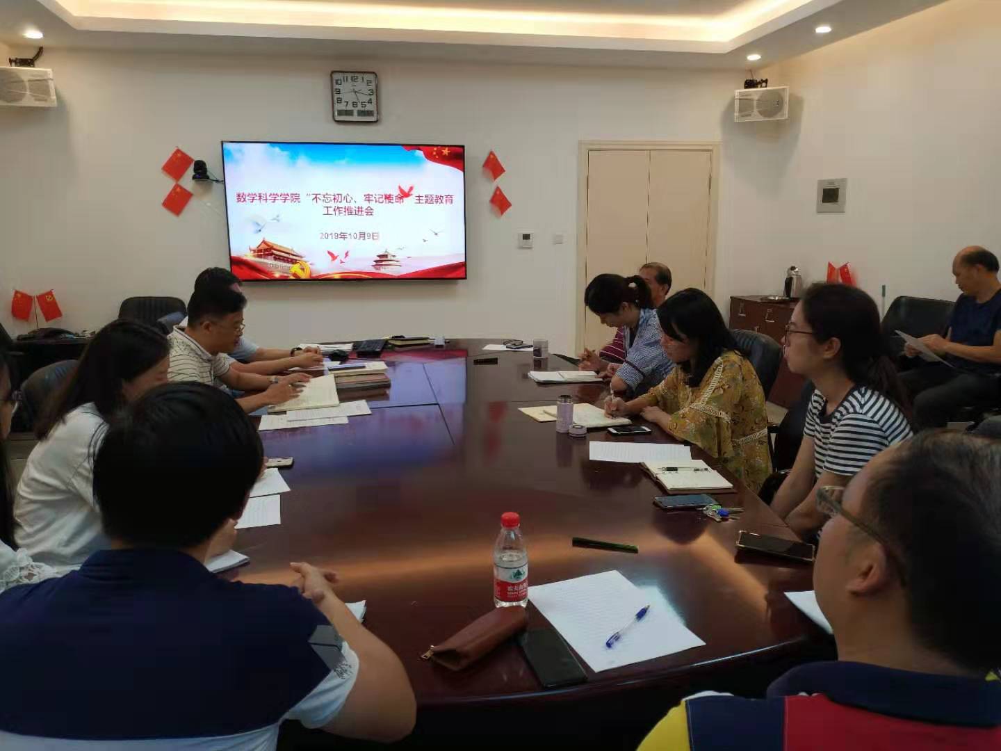 黄宝秋重点传达了10月8日学校“不忘初心、牢记使命”主题教育推进会精神。他强调,全院要把开展好主题教育作为一项重要的政治任务,对标对表学校主题教育实施方案,把握好时间节点,把各项工作进一步抓深、抓细、抓实。要把学习教育贯穿主题教育始终,保质保量完成处级党员领导和党支部集中研讨任务,努力在联系实际、学深悟透、融会贯通上下功夫。要统筹主题教育各项措施,开展学习教育同时,加快推进调查研究、检视问题、整改落实,特别是要按照党中央的最新部署,严格对照党章党规,召开找差距专题会议,真刀真枪解决问题、立行立改提升工作。他还特别强调,我院是福建省首批标杆院系、样板支部的创建单位,我们要把为党育人、为国育才和培育时代新人、建设数学强国的时代责任和历史使命扛在肩上,以“双创”工作为推动力,把思想和行动统一到党中央和校党委的决策部署上来,履职尽责、担当作为,扎扎实实抓好主题教育,以踏踏实实的作风和迎难而上的韧劲解决党的建设和“双一流”建设过程中党员及师生员工迫切希望解决的重点问题,为建设一流学科、培养一流人才提供坚强保证、创造更好条件。会议还对进一步加强氛围营造、党支部书记轮训、党支部共建共创、党员结对帮扶、加强网络平台学习等工作进行布置。