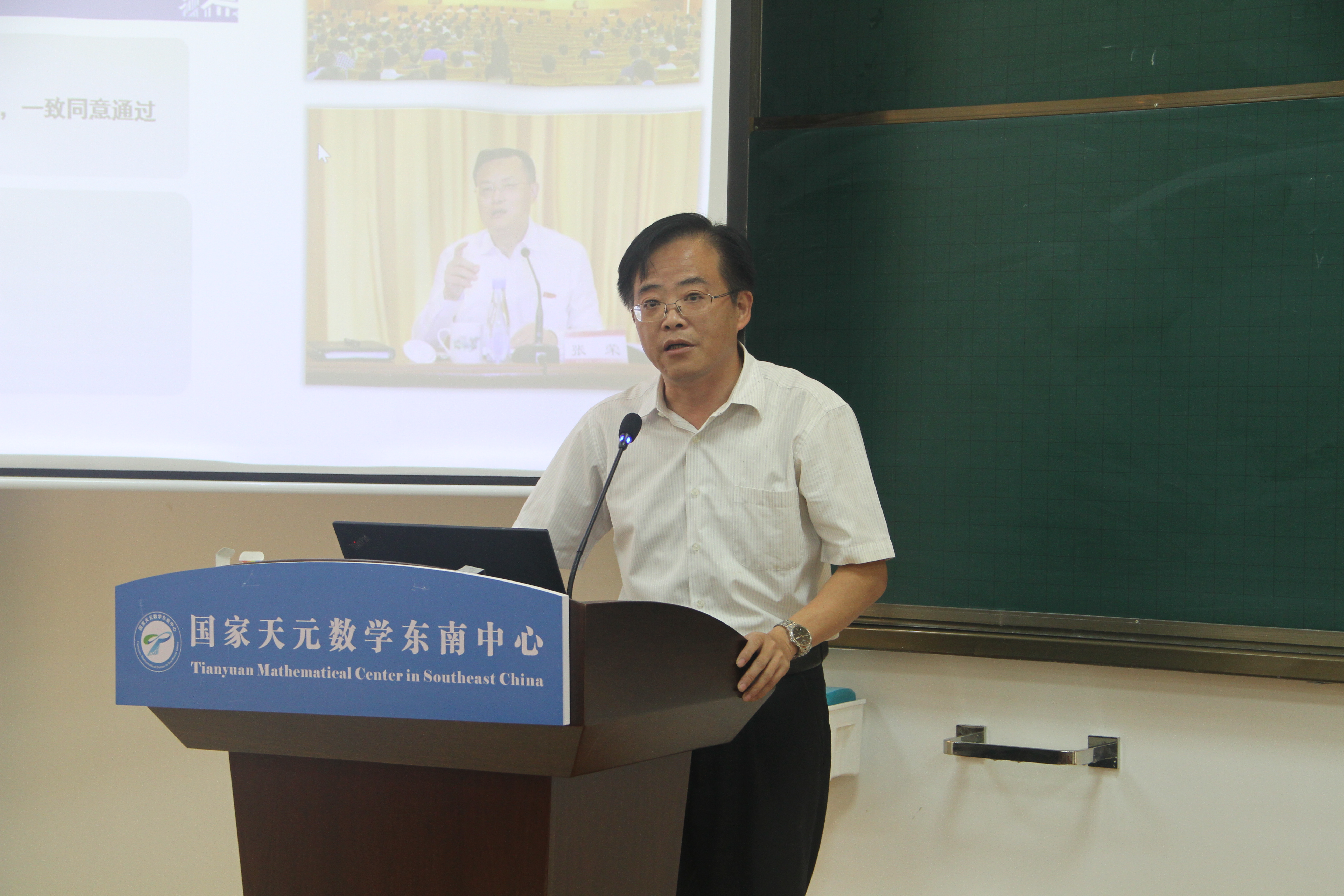 谭绍滨对学院上半年的行政工作作总结,通报了学院财务情况,分析了目前存在的问题,并就新学期重点工作进行了布置。他用详实的数据总结了过去一段时间学院在师资队伍建设、人才培养、科学研究、国家天元数学东南中心建设等方面取得的成绩,并针对存在的主要问题提出解决思路,同时鼓励教师多开展高水平学术交流活动,为学生寻求更多国(境)外长期交流学习的机会。他还着重分析了新一轮全国学科评估面临的形势与挑战, 要求大家在思想上、行动上高度重视学科评估工作,有关负责同志要全面了解相关政策和指标体系,把握要点,尽早谋划,提前准备,充分调动师生员工积极性,广泛联络校友,深挖数据资源,认真查找不足,努力补齐短板。