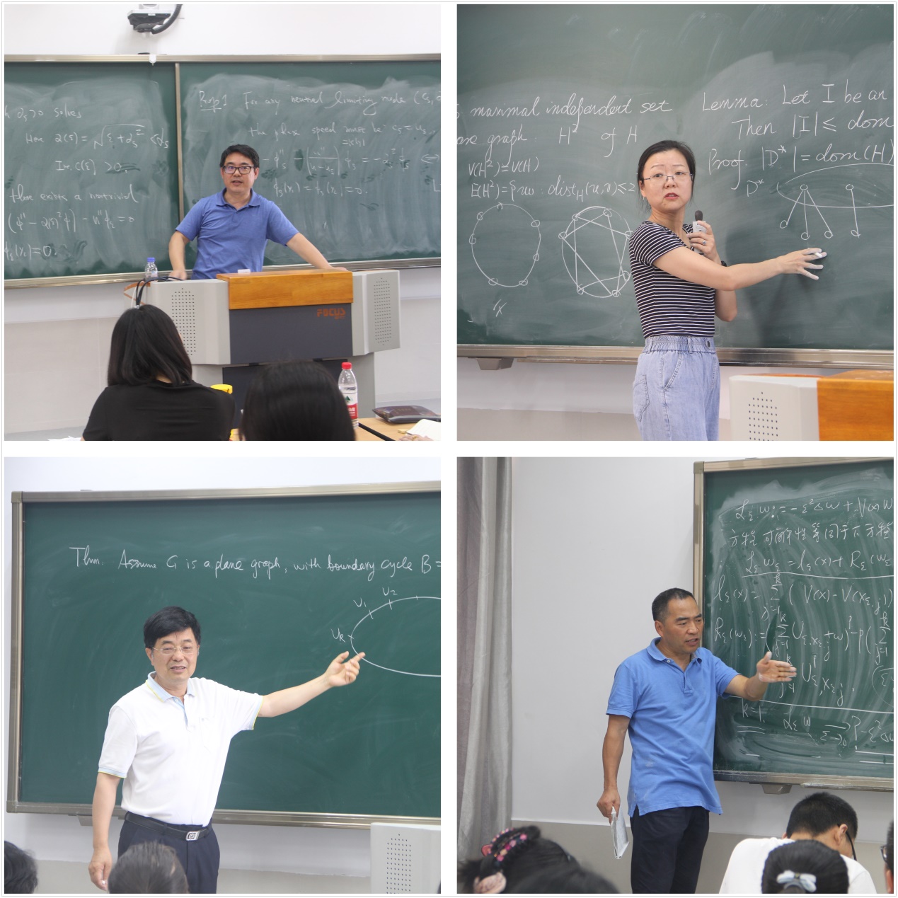 本次暑期学校根据研究方向平行开设“偏微分方程与几何分析”和“图论与优化”2个平行班,每班招生学员60人左右,各开设两门课程,北京大学的章志飞教授、中国科学技术大学麻希南教授、浙江师范大学张昭教授和朱绪鼎教授分别讲授《流动稳定性的数学理论》、《椭圆方程中有限维约化以及在偏分几何中的应用》、《近似算法》和《Combinatorial Nullstellensatz Its Applications》。