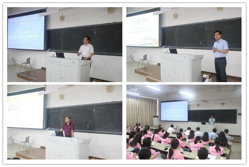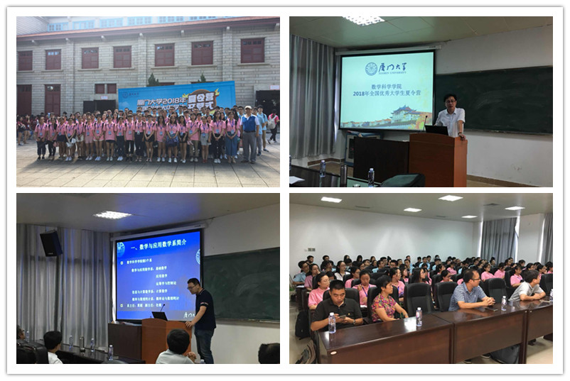 7月14日下午,学院在海韵园校区教学楼404教室举行学院夏令营开营式,学院党委书记黄宝秋、副院长张剑文、副院长金贤安、国家教学名师林亚南教授出席了开营式,陈国强副书记主持开营仪式,在愉快而热烈的气氛中,黄宝秋书记首先代表学院对营员们的到来表示热烈欢迎,并向同学们介绍了学院的历史发展、学科建设、师资队伍和人才培养等方面的概况,让同学们对厦门大学数学科学学院有更清晰的认识。随后,副院长张剑文教授向同学们介绍了我校浓厚的人文情怀以及我院在硕士、博士招生方面的政策,鼓励同学们选择厦大、选择数学。来自华中科技大学数学与统计学院的刘敏同学则作为营员代表做了发言,表达了对厦门大学和数学科学学院的感谢,也表达了对厦大校园的喜爱。