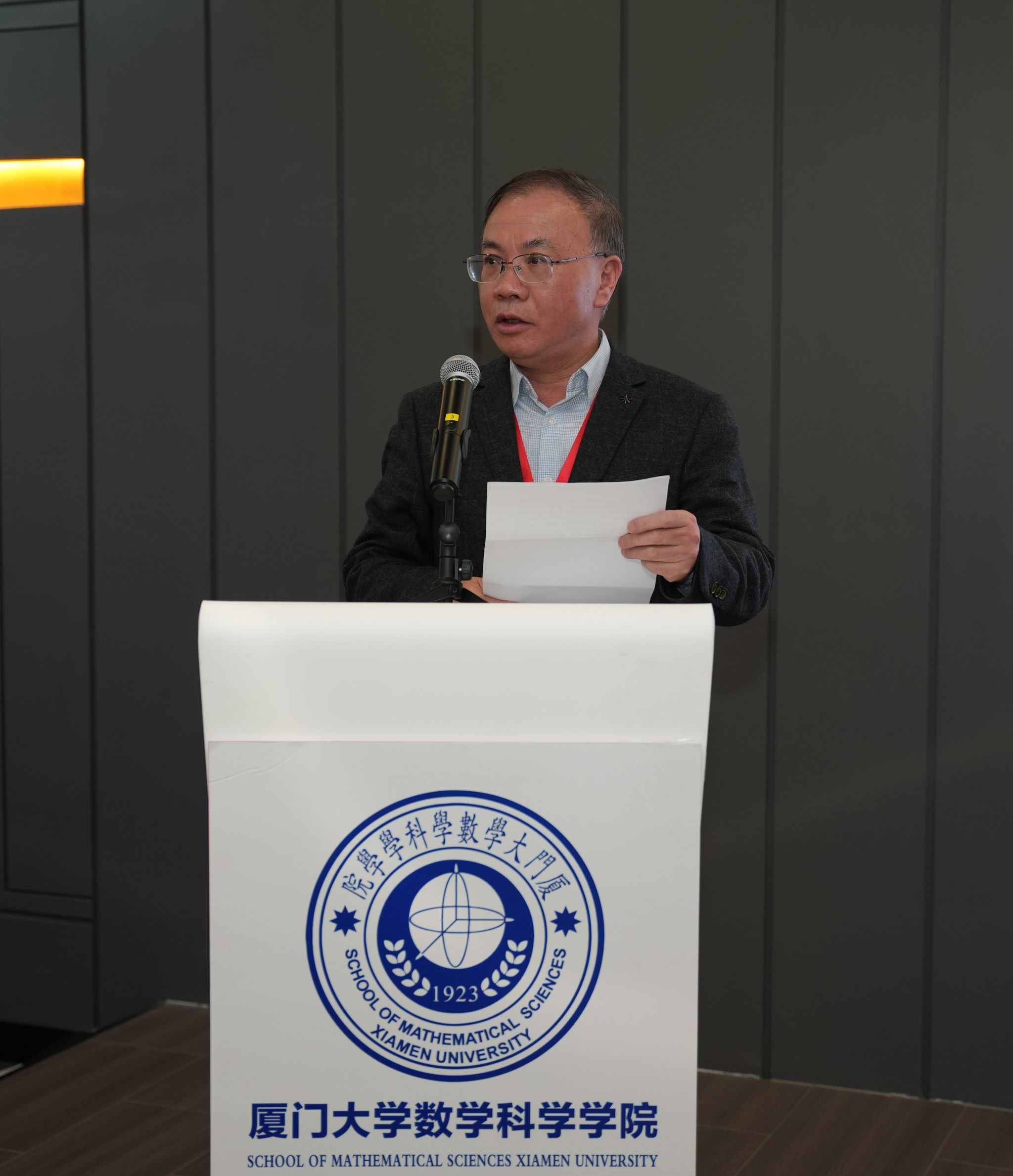 在随后进行的会议上,谭绍滨院长简要回顾了数学科学学院的发展历程,并从学科建设、人才培养、师资队伍建设、科学研究等方面着重介绍了学院取得的建设成就。他指出,学院学科建设呈现良好局面,厦大数学学科进入ESI全球前0.25%;人才培养质量不断提升,数学与应用数学、信息与计算科学和统计学入选国家级一流本科专业建设点,数学类本科专业入选教育部“强基计划”和“拔尖计划2.0”;师资力量不断增强,汇聚一批高层次的人才队伍;科研工作成果丰硕,学院科研经费连续两年突破2000万元。学院先后获批建设国家天元数学东南中心和福建省高校数学学科联盟,为数学学科发展带来了更广阔的机遇。下一步,学院将充分发挥国家数学天元东南中心和福建省高校数学学科联盟的平台作用,努力培育优势学科方向,进一步推动数学学科高质量内涵式发展。