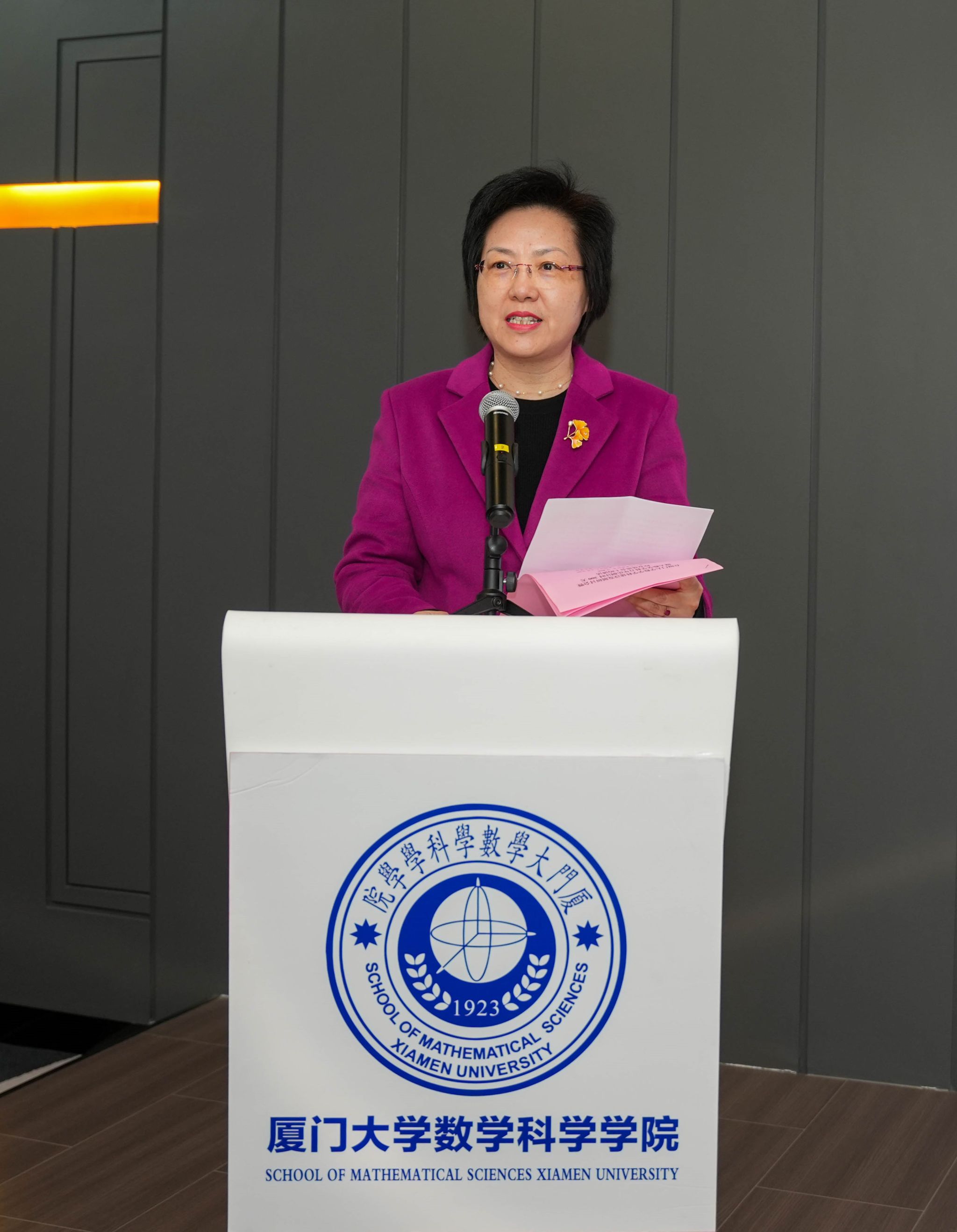 厦门大学副校长邓朝晖首先代表学校向本次会议的顺利召开表示祝贺,对出席会议的校友们表示欢迎和感谢。她表示,厦大数学学科具有悠久办学历史和显著办学声誉,许多著名学者曾在此开展科学研究与教育教学工作,培养了以柯召院士、陈景润院士、林群院士、陈纯院士等为杰出代表的一大批优秀校友。“景润精神”更是作为厦大数学的精神坐标,激励了一代代青年人永攀高峰。近年来,全面加强基础科学研究已经成为一项国家战略。数学特别是基础数学是科学研究基础中的基础,其重要作用日益突显。她希望值此厦大数学学科百年庆之际,各位校友能多为母校的发展献计献策,凝聚发展共识,汇聚发展力量,画好爱校荣校“同心圆”,也希望数学科学学院要抢抓历史机遇,谋划好新百年发展的新蓝图,创造更多新的辉煌。