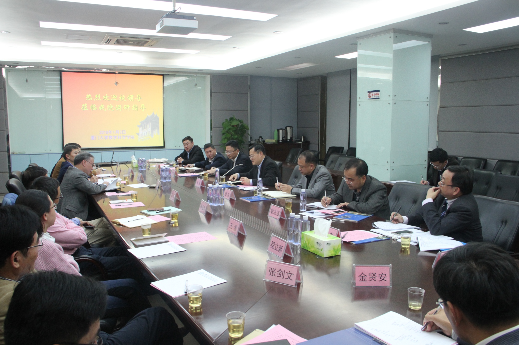 1月3日下午,张荣校长率领赵铁校长助理、学校办公室孙理主任、规划办黎永强主任、人事处吴立武处长、科技处谭忠处长、研究生院方颖副院长等莅临我院调研指导。学院党政领导班子成员、系主任、学科带头人及青年教师代表等出席会议。