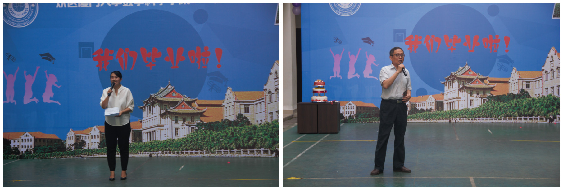 毕业生代表、2017届硕士研究生蔡庆淞和本科生胡志芳分别发言。他们表达了对数学专业深深的热爱、对学院表示感恩。作为毕业生,会谨记校训,奋发图强,终有所成以回报母校。