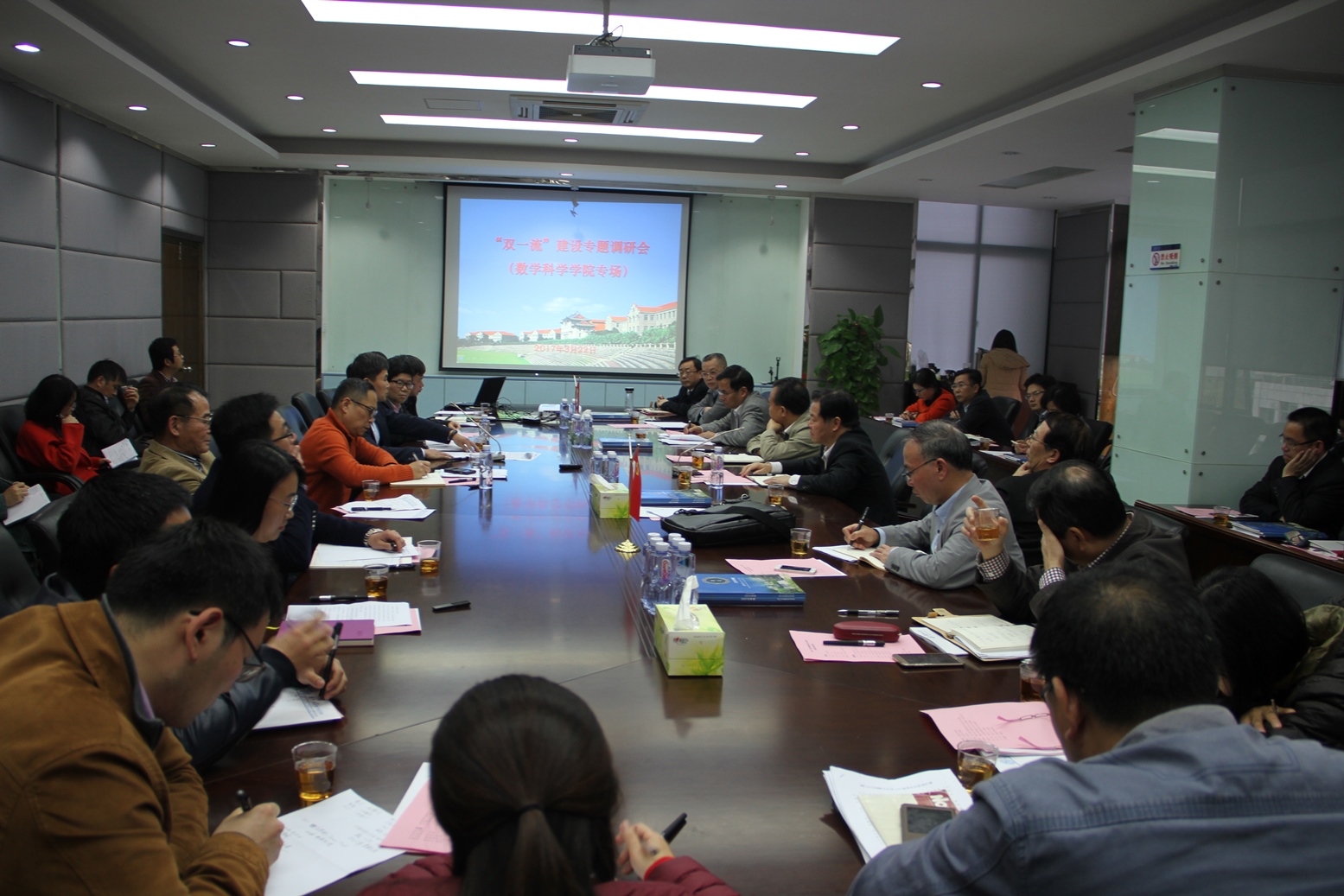 会上,林亚南院长代表学院做工作汇报。林亚南院长用翔实的数据、通过对比分析,如数家珍般地分析了学院事业发展路径,总结学院办学过程中形成的宝贵经验,并结合国家重大研发计划和国家自然科学基金委“十三五”规划展望数学学科发展的机遇和挑战,分析了制约学科发展的瓶颈问题,提出今后发展的思路和建设举措。张明智书记在发言中指出,一流人才对数学学科的发展尤为重要,在今后的“双一流”建设中学院将在引进人才和培养年轻教师上花更大力气,在专业方向和团队建设中,要有所为,有重点作为,人才培养要贯彻立德树人这个根本任务,以一流党建带动一流学科建设。其他与会人员就有关事项进行了补充。
