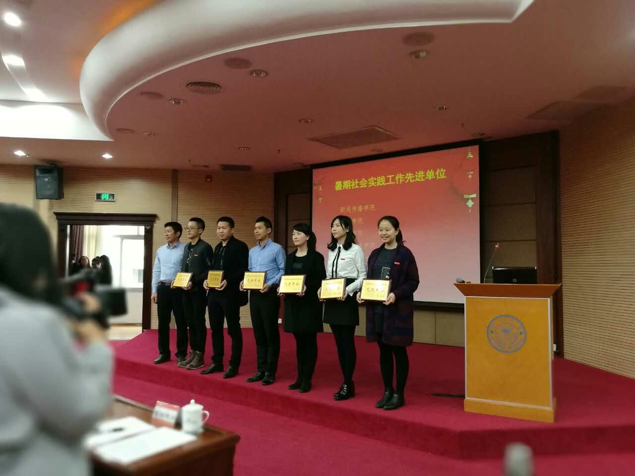 石义凯老师(左四)代表学院领取“暑期社会实践工作先进单位”奖牌
