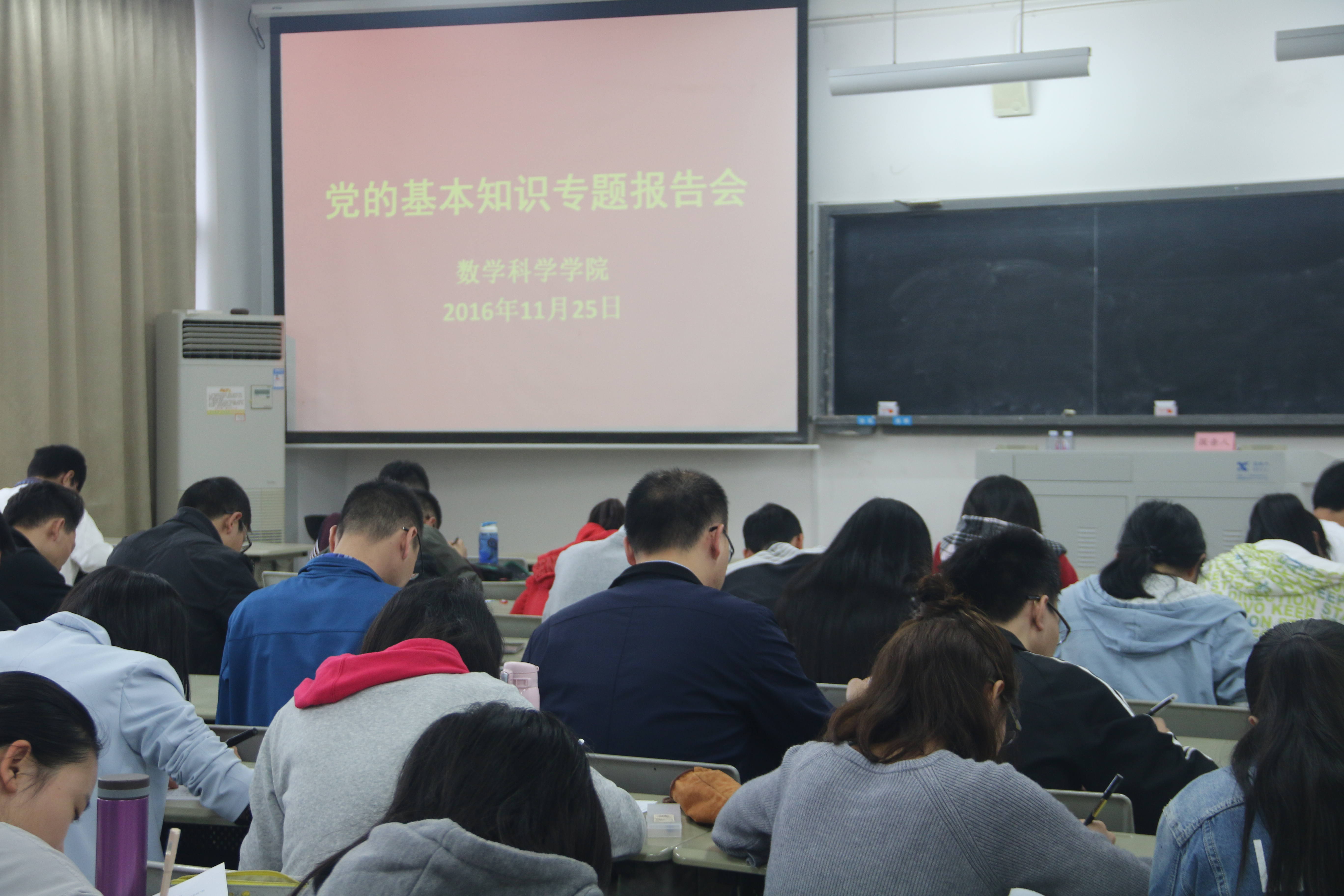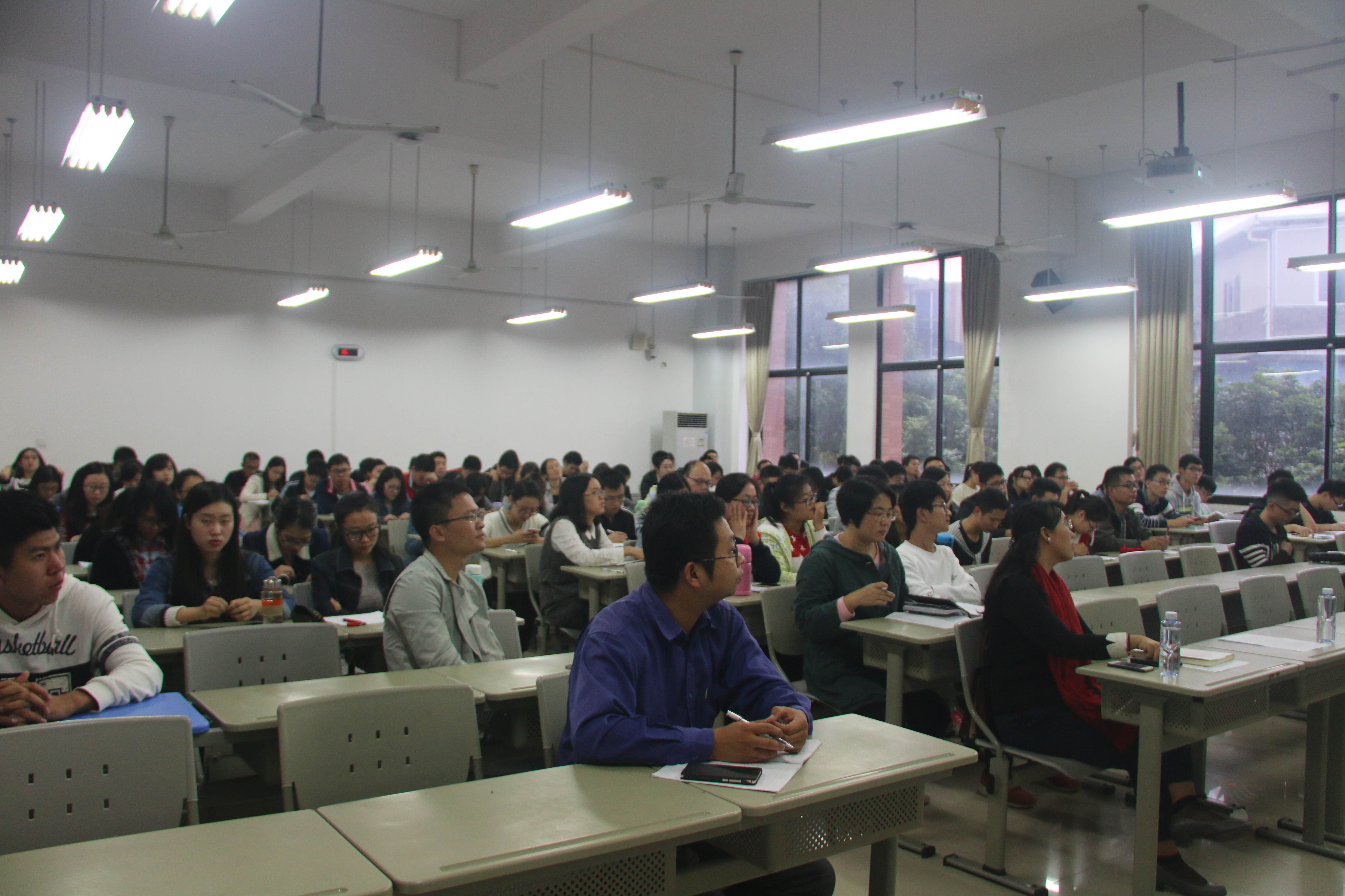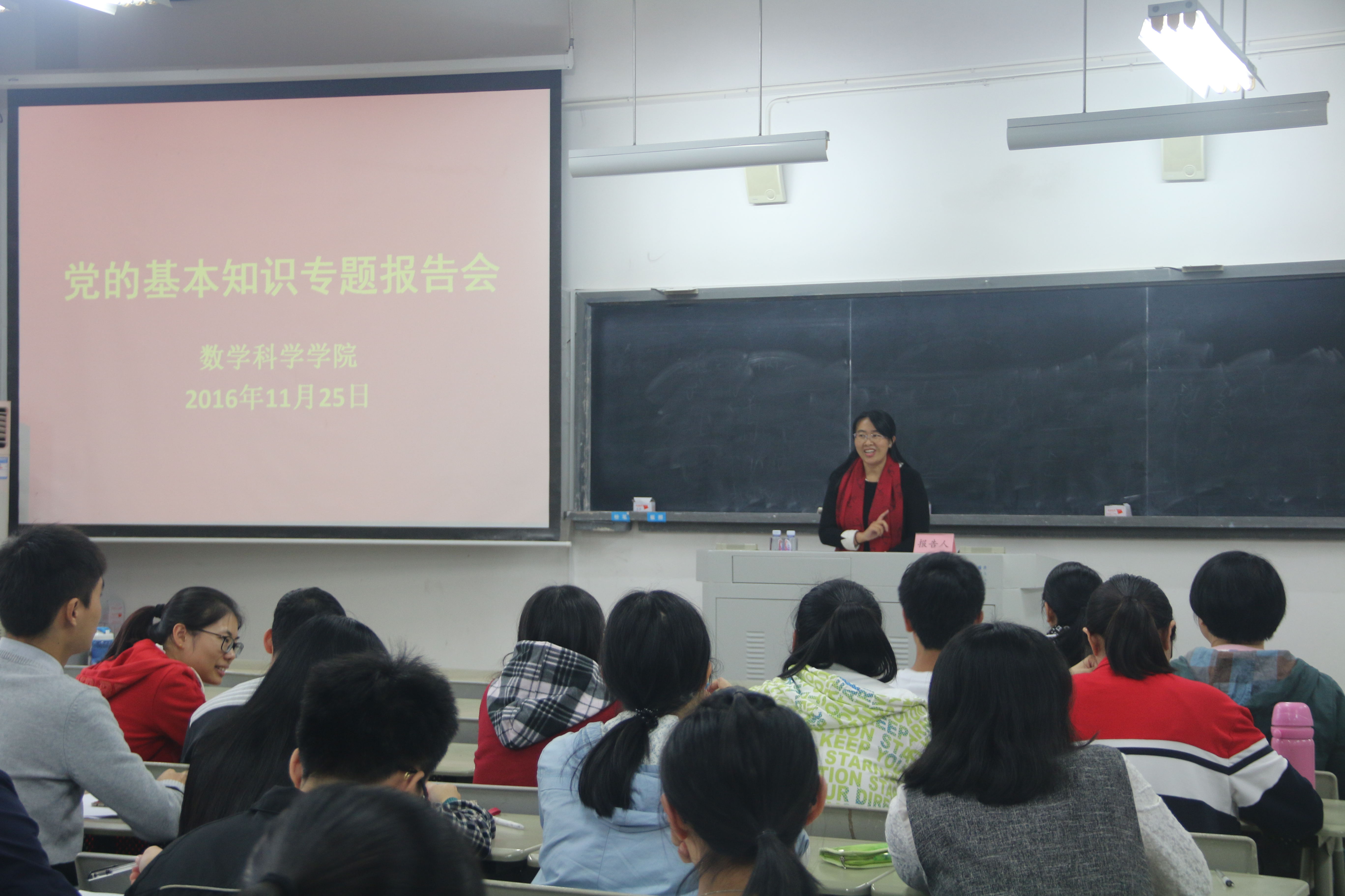 11月25日下午,学院在海韵教学楼201教室举办党的基本知识专题报告会,校党委组织部副部长廖志丹以《践行“两学一做”,争做时代先锋》为题作报告。学院党委副书记刘宁主持报告会,全院学生党员、入党积极分子、教师党员代表一百四十余人到场听取报告。