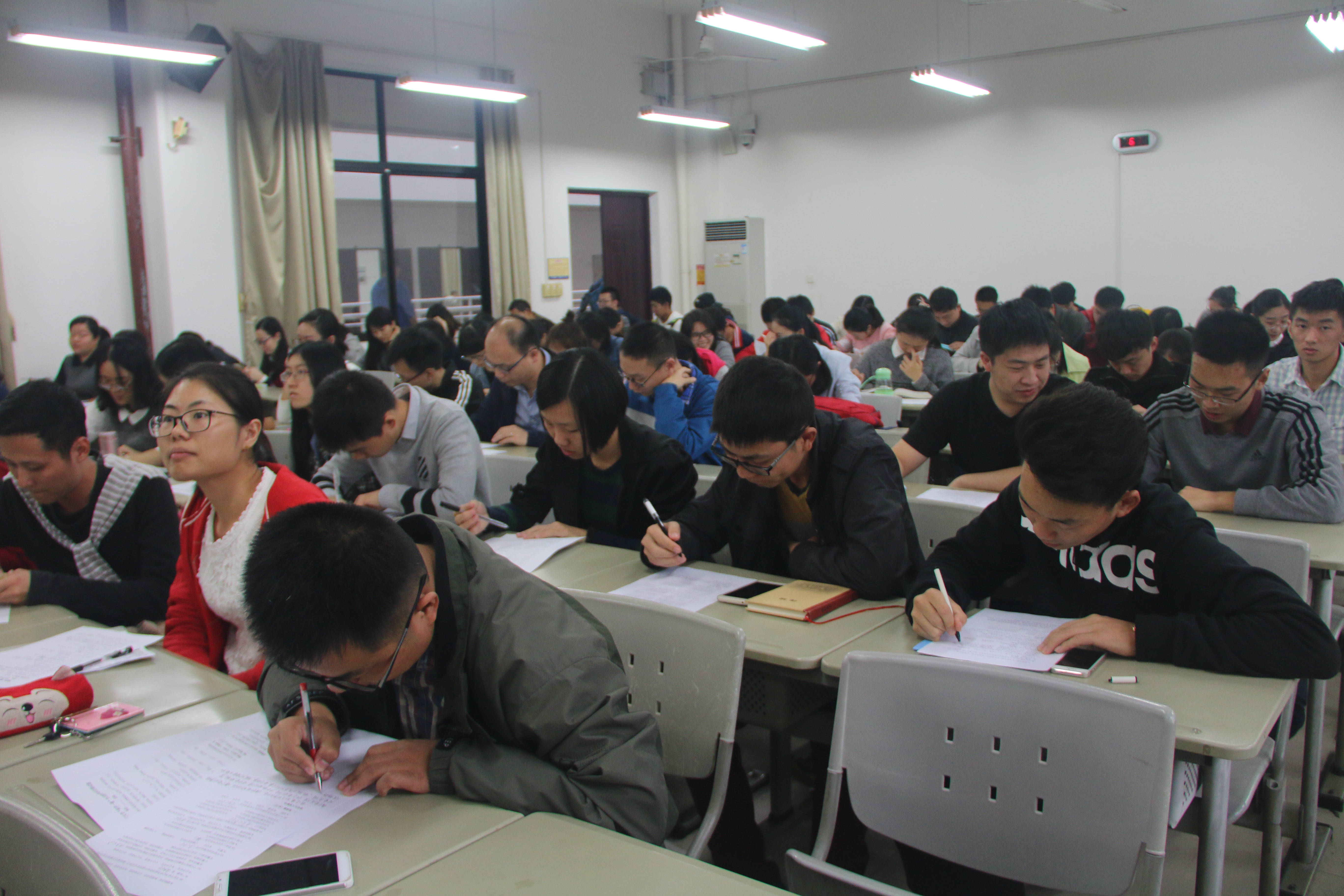 报告开始前,廖老师还以书面考试的形式对全体学生党员进行了党的基本理论知识测试,实际检验“两学一做”学习成效,进一步推进学习教育形成党员自主、常态机制。