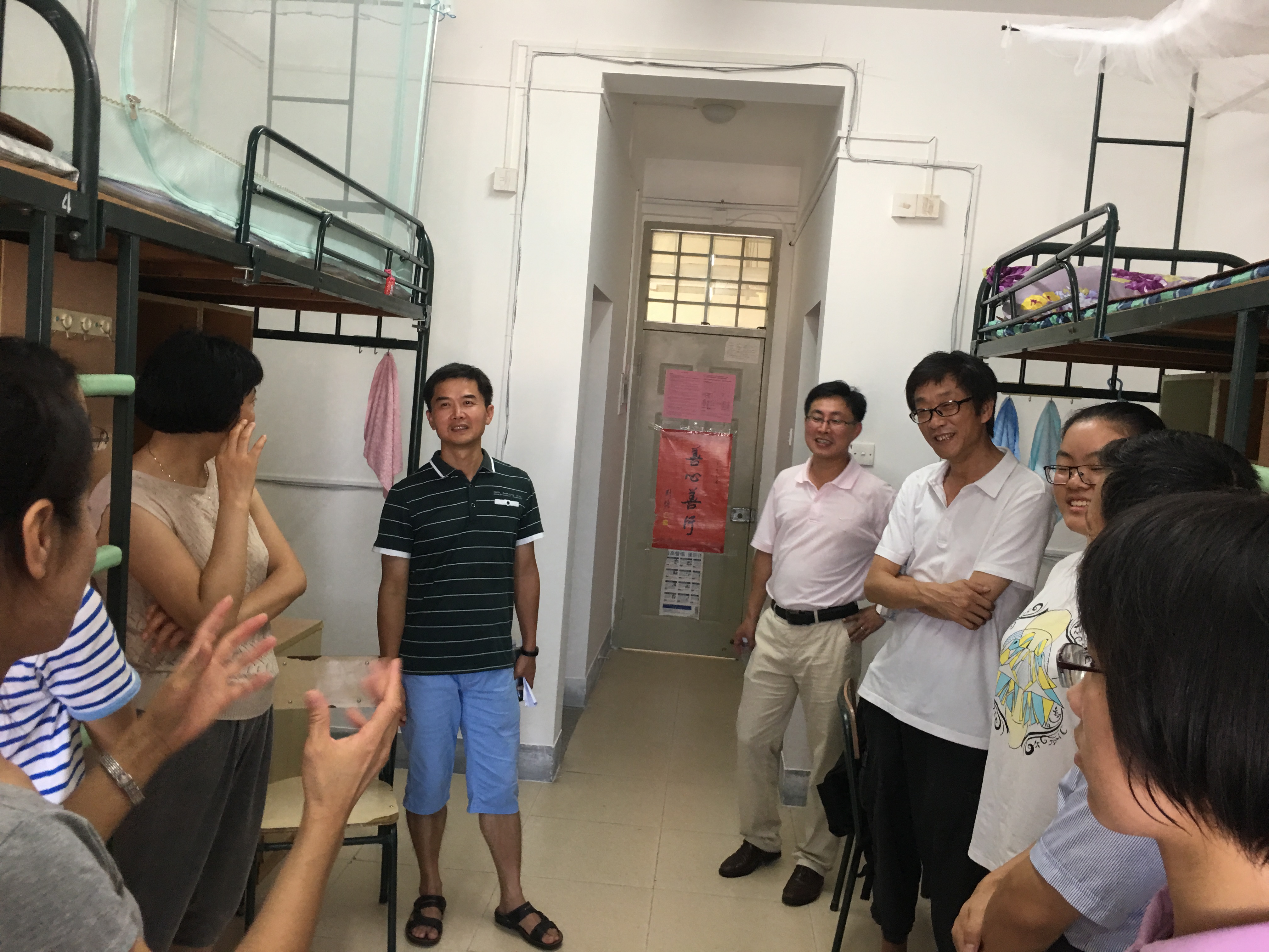 为了帮助新生更好地适应大学生活。25日下午,院党委书记张明智、副院长钱建国、党委副书记张剑文、新生辅导员陈淑铌走访了新生宿舍。查看新生的入住情况,并与新生及家长亲切交谈,询问同学们的适应情况,特别强调了宿舍安全和财产安全,以防上当受骗。