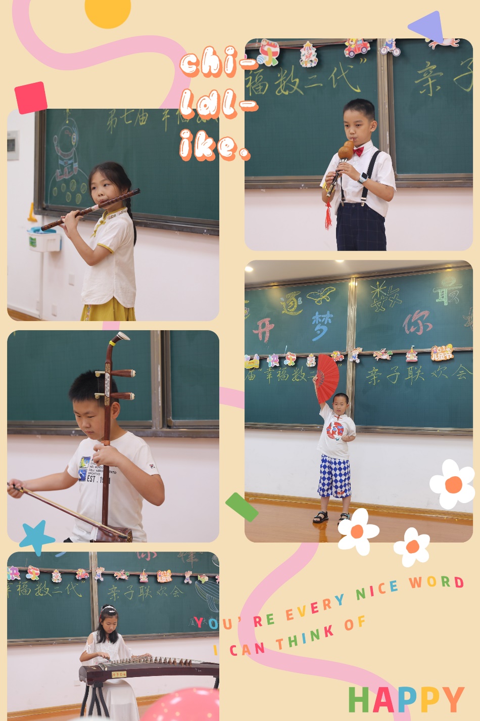 上午九时二十三分,伴随着六位主持人的倒计时,联欢活动拉开帷幕。开场朝气蓬勃的啦啦操《牛牛》,展现了独属小朋友的活力。朗诵《中华少年》和《诗意中国》展示了当代小学生的远大理想和爱国情怀,歌曲《爱如火》、《花园种花》、《下山》、《郊游》、《明天会更好》、《小星星》、《迎春花》、《超级飞侠》体现了小朋友的纯真童趣,在专属于他们的节日中载歌载舞。四位小朋友分别演奏钢琴曲《December》、《C大调小奏鸣曲》、《天空之城》、《声声慢》缓缓钢琴声令人陶醉。民乐也争相出场,古筝弹奏《射雕英雄传》《大鱼》,二胡独奏《田园春色》,葫芦丝吹奏《妈妈的吻》,竹笛吹奏《送别》,四名小朋友用民乐独有的韵味带来一场视听盛宴。功夫扇《少年中国说》中国功夫与中国少年的组合尽显少年意气,舞蹈《摇啊摇》活力四射,激情澎湃,相声《不告诉你名字的神秘相声》保持神秘感的同时也让人捧腹大笑。演出过程中,四次抽奖将联欢会一次一次推向高潮,而最后小朋友一起上台演唱《在小小的花园里面挖呀挖呀挖》和《孤勇者》,小朋友们欢快的歌声甜美的笑容感染了所有的人,大人们纷纷拿起手机记录下这美好的时刻!