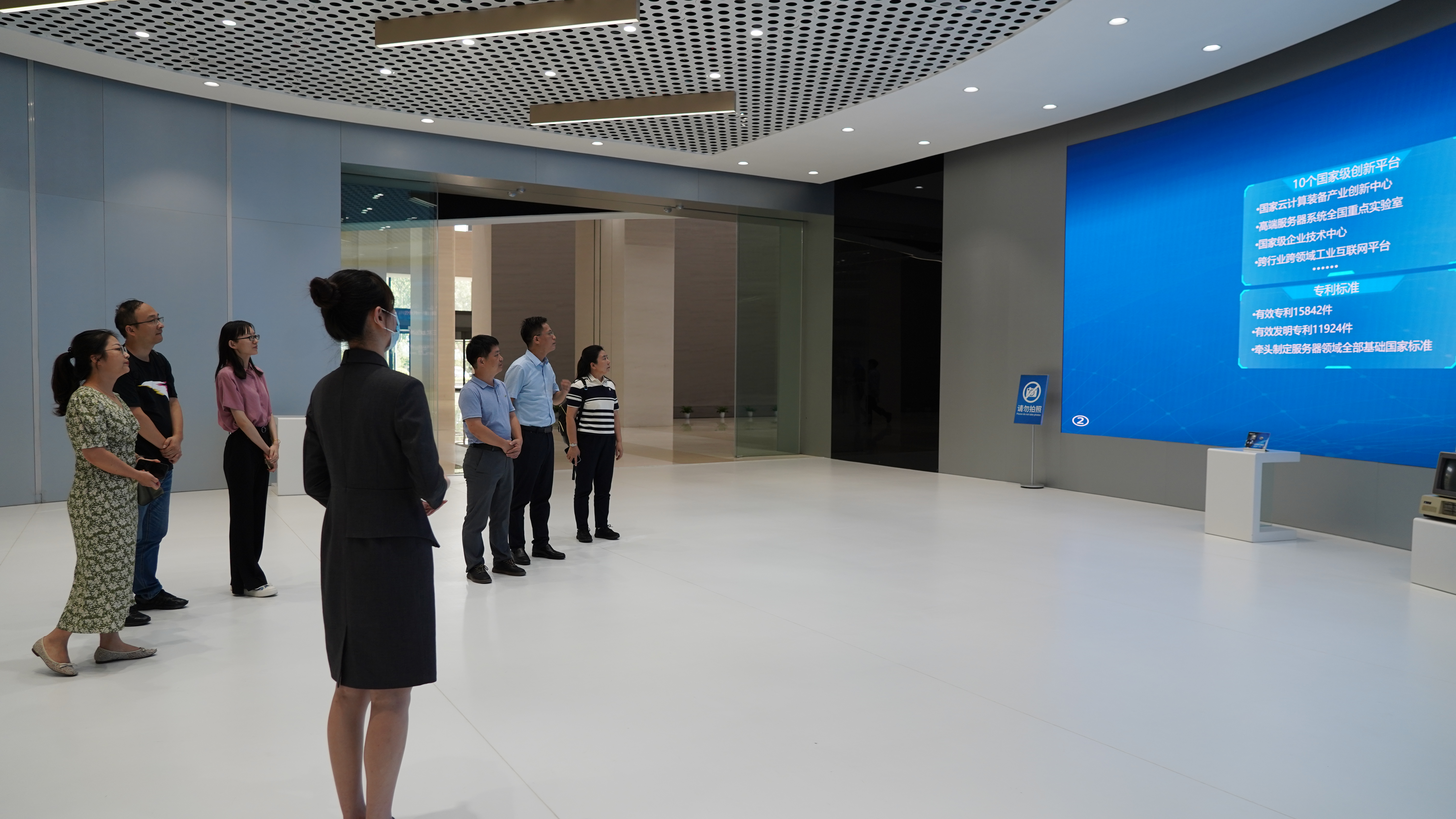 学院一行参观浪潮集团展厅,全面了解了浪潮集团发展历程、企业技术创新、产品应用服务和标准建设等情况。展厅内讲解人员介绍了浪潮工业互联网、浪潮云全球运营指挥中心、浪潮创新创业孵化中心等方面内容。