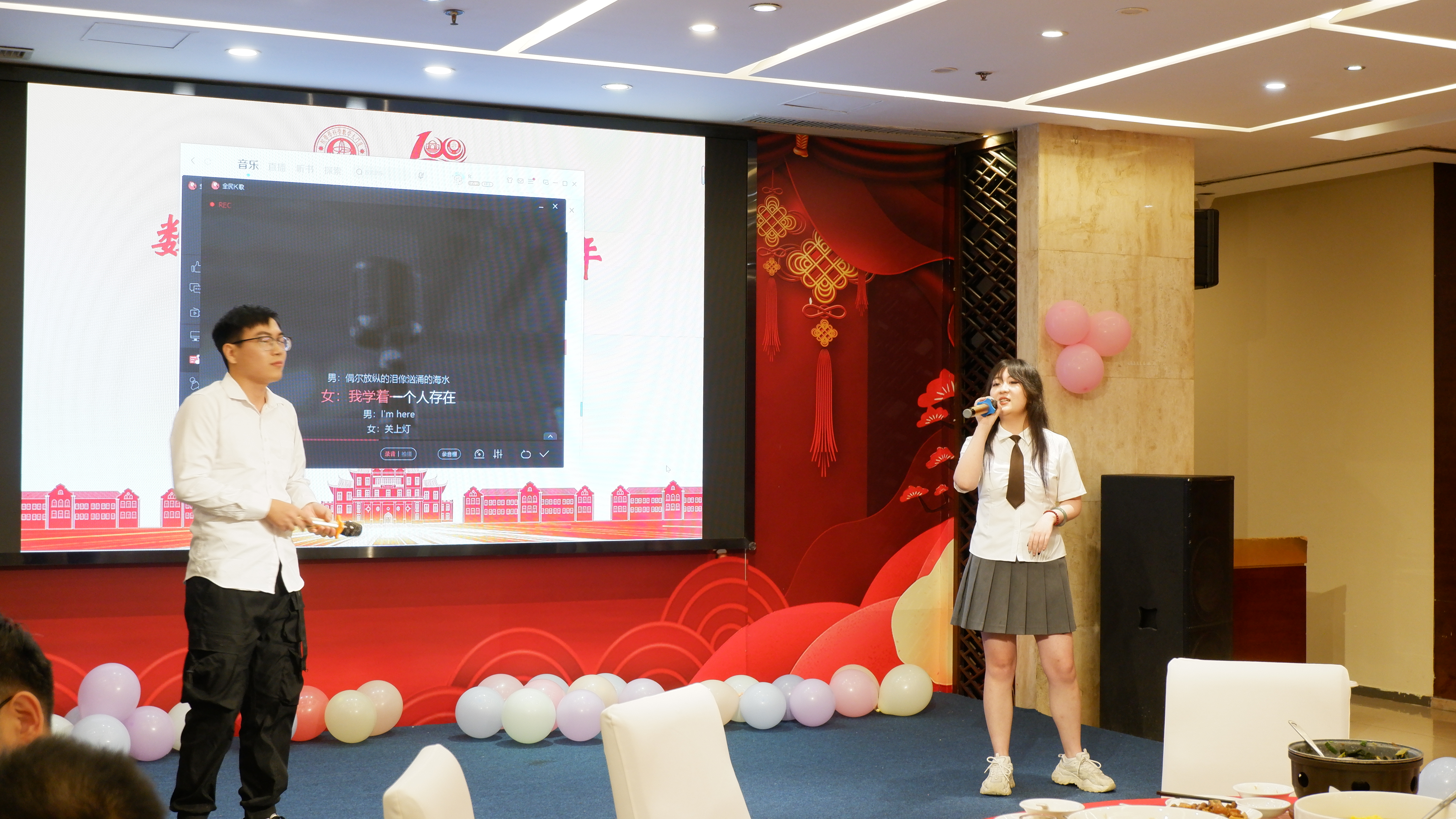 毕业典礼结束后,由硕士毕业生刘家浩和张小敏共同主持毕业晚会。多才多艺的同学们用各种方式表达不舍之情,送上祝福之意。最后一首《凤凰花开的路口》唱罢,本次毕业晚会圆满落幕。