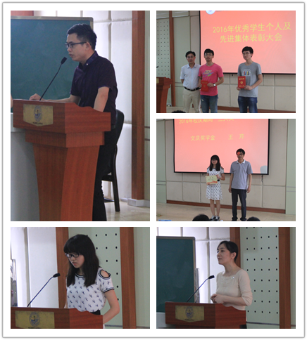 首先,张剑文副书记宣读了2015年度共青团工作先进个人和集体、校级奖学金获奖学生、院级奖学金获奖学生的表彰决定。各位嘉宾、老师分别为2015年度厦门大学和数学科学学院共青团工作先进个人和集体、2016年校庆期间校级奖学金的获得者、2016年院级奖学金获得者颁奖。张剑文副书记为厦门大学通报表扬学生团队——“高教社杯”全国大学生数学建模大赛全国一等奖获得者颁发证书;钱建国副院长特别为2016年厦门大学三大奖之一——文庆奖学金获奖学生王芹颁奖。