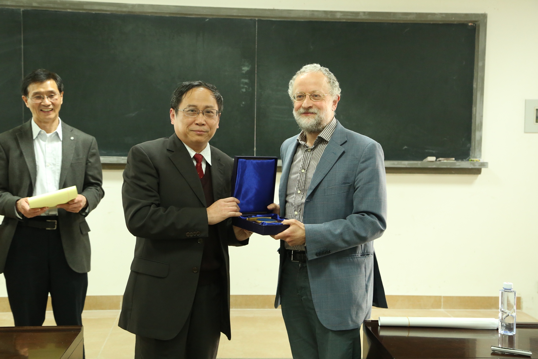 4月5日下午,厦门大学第726期南强学术讲座在海韵园实验楼105举行,德国自然科学院院士、马普应用数学研究所所长Jürgen Jost教授为师生们讲授题为“Mathematics: What is that good for?”的公众报告。林亚南院长为Jürgen Jost教授颁发南强学术讲座铭牌。