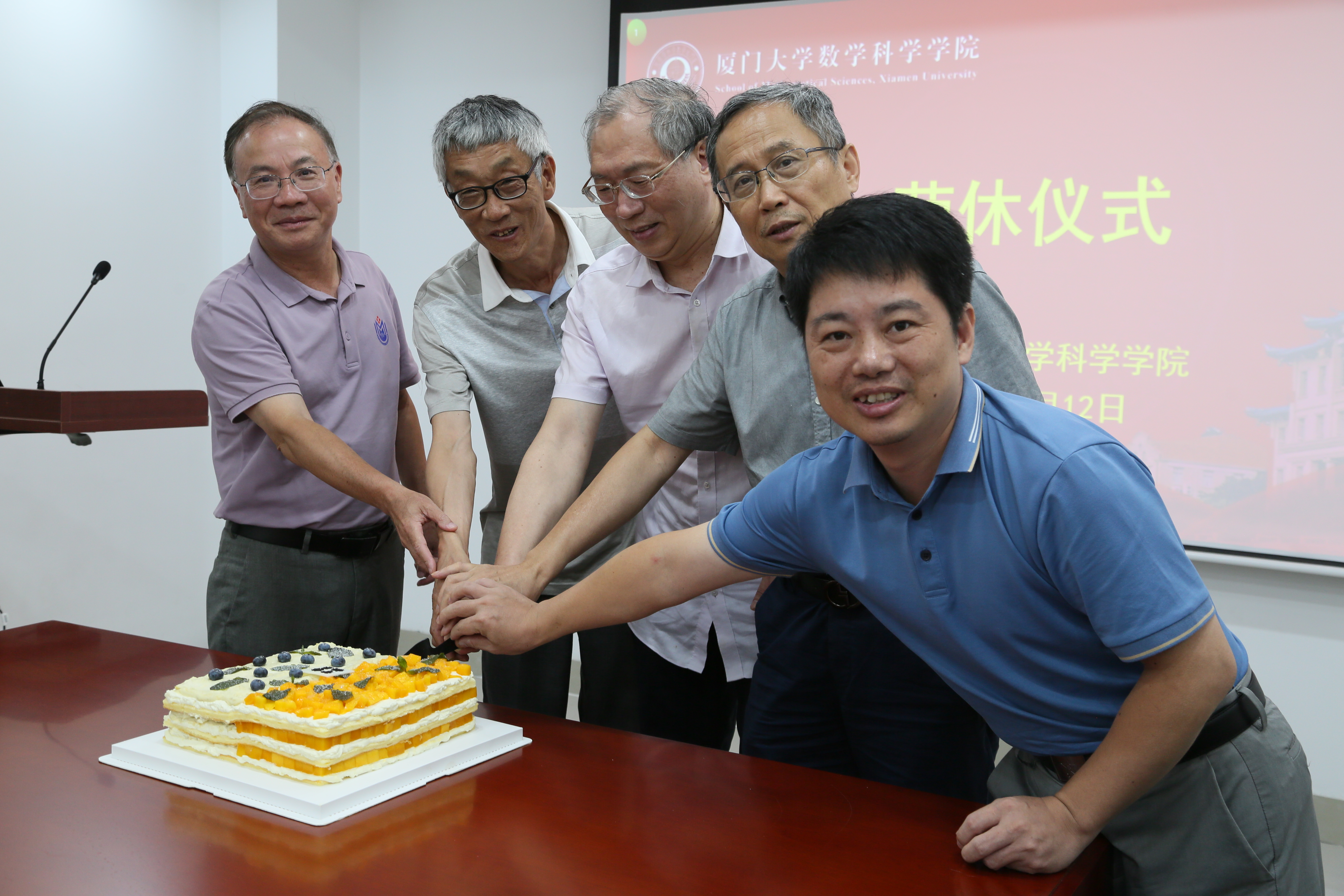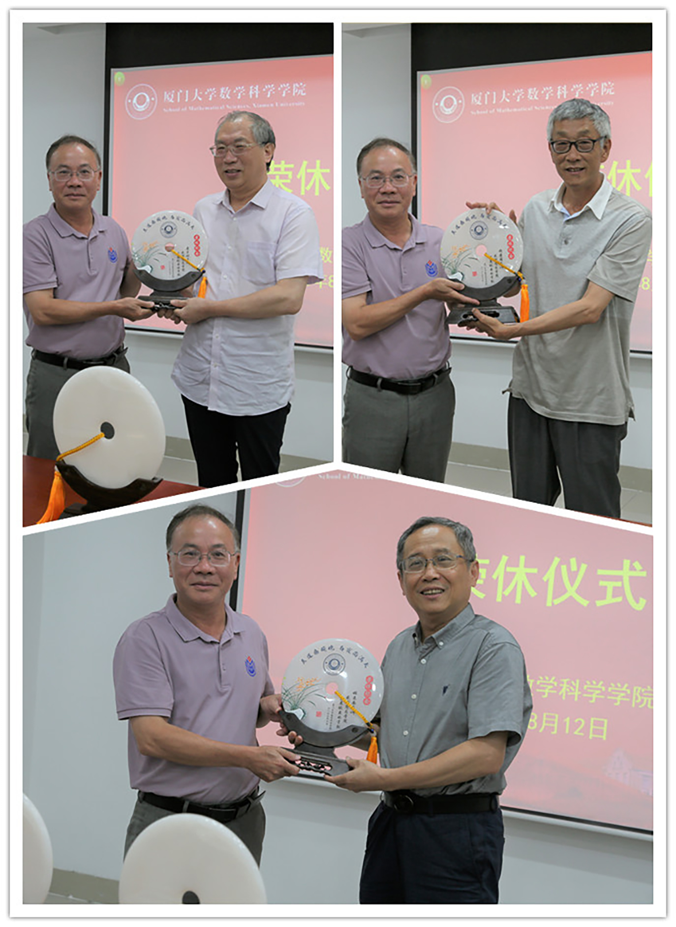2023年8月8日下午,学院在海韵园数理楼天元中心会议室为2022-2023年度退休的林亚南、黄荣坦、陈桂芝、林群、丁昌明、钱建国6位老师举办荣休仪式。荣休仪式由张剑文副院长主持。