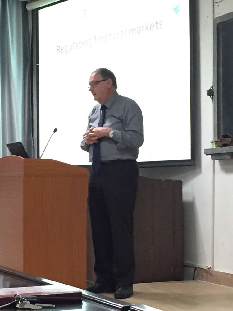116日晚,新西兰梅西大学金融学院院长Martin Young 教授在海韵实验楼105为我院同学带来了一场题为《中国在新地全球经济中扮演的重要角色:亚洲基础设施投资银行》的精彩讲座。讲座由学院党委书记张明智主持