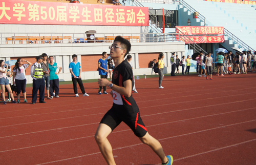 14级廖康恩贝在5000米长跑中挑战自己,突破极限,表现了数院人顽强奋斗坚持到最后的精神。