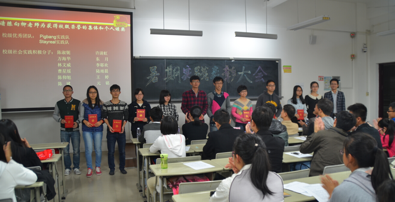 获奖的实践队代表还与大家分享了他们的实践过程和心得体会。此次社会实践的内容丰富多样,有关于内蒙古农牧民生产生活现状的调研,有对农村孤寡老人生活现状的调查,有关于厦门筼筜湖以及湖内红树林种植的调查,有到晋宁双河进行的乡村支教活动,有到工商银行的个人实习活动,有关于漳州猪养殖业的调研,有关于闽南语使用现状的调研,还有关于知青时代的历史调查。实践队代表们除了分享他们的经验之外,还鼓励更多的同学能够做出更有意义的实践活动,体会到实践过程中的成长。