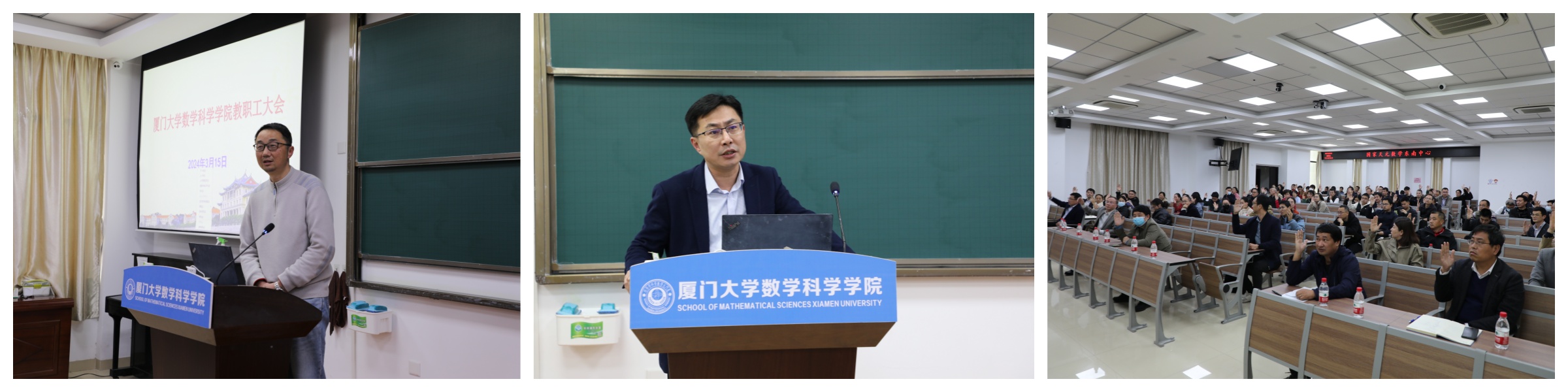 2024年3月15日下午,学院召开春季学期初教职工大会,学习习近平总书记在全国两会期间的重要讲话和两会精神,审议数学科学学院教师科研用房调整分配方案,听取学院2023年党政和财务工作报告,部署2024年重点工作。学院党政领导、工会负责人和教职员工参加会议。院党委副书记毛通双主持会议。
