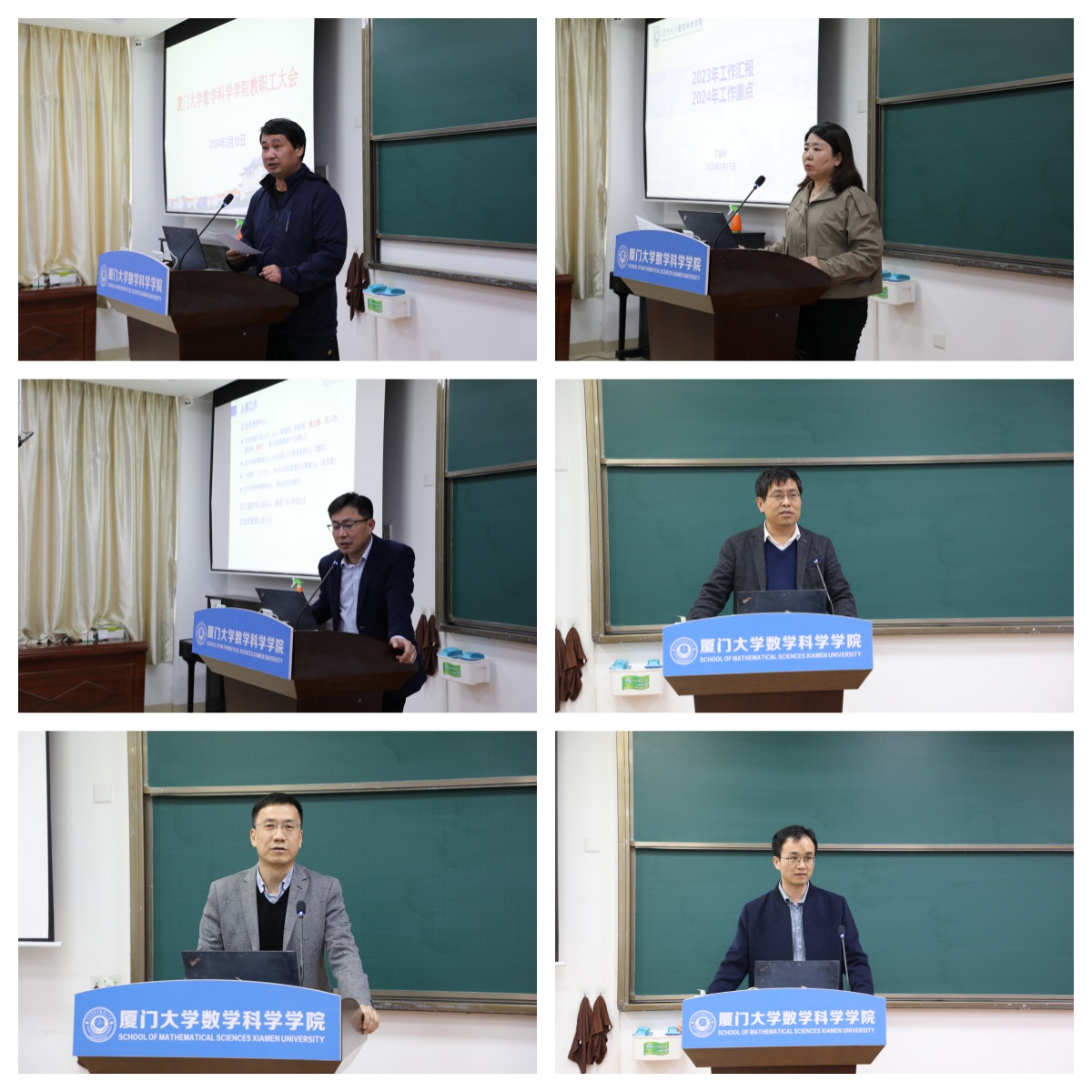 谭绍滨院长传达了全校行政系统工作会议精神,简要回顾了学院2023年行政工作,报告了2023年财务情况,部署了2024年重点工作。他肯定了学院在人才培养、学科建设、师资队伍建设、科学研究和国家天元数学东南中心等方面取得的成效。他强调,当前人才竞争日益激烈,要强化危机意识,加大人才引育力度,争取在高层次人才项目上有新进展;要加强博士后工作,努力吸引更多优秀人才;要重视人才培养质量,进一步提高毕业生升学率;要加强对外交流合作,积极为学生到世界名校学习创造机会;要建设好国家天元数学东南中心,努力争取更大工作新成效;要认真做好学院教师科研用房调整分配工作,把好事办好做细;要依法规范使用经费,开源节流,提高经费使用效益。