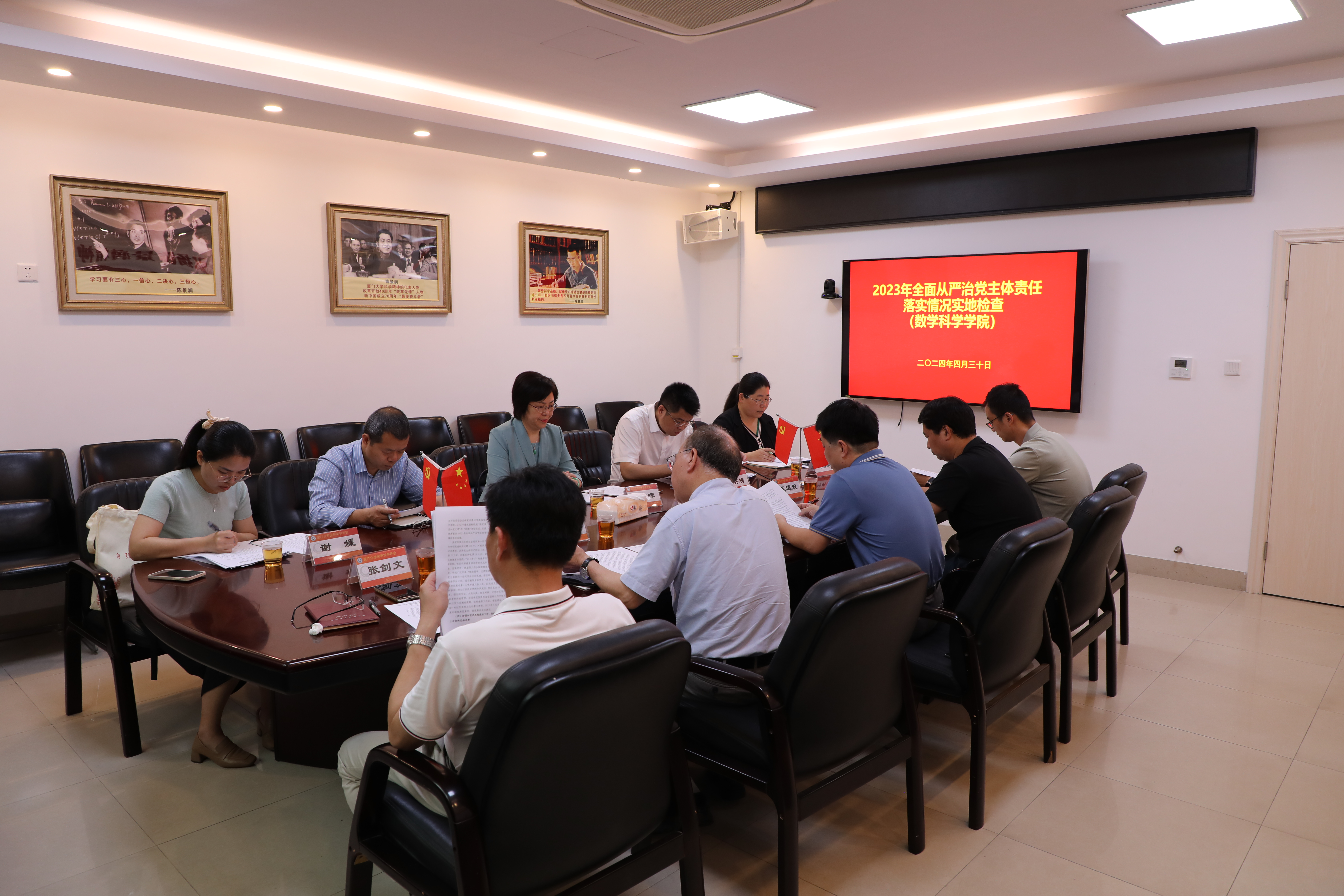 4月30日上午,校党委常委、副校长邓朝晖带领校党委2023年全面从严治党主体责任落实情况检查第三检查组到数学科学学院检查指导工作,第三检查组副组长陈怀锋,成员房太伟、叶秀蓉、谢媛等出席会议。数学科学学院党委书记张清榕、院长谭绍滨等班子成员参加会议。