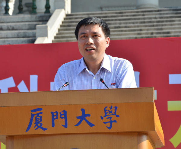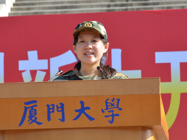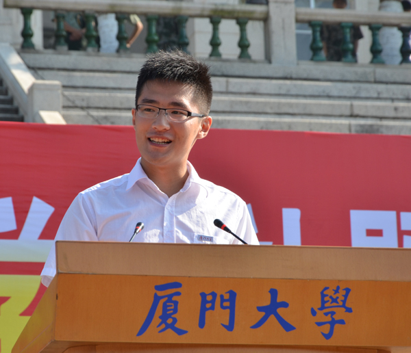 老生代表、管理学院2012级本科生柴干向全体新生们说,希望大家能够尽快适应大学的学习生活,做一个独立、自由的人,学会独立思考,勇于尝试。树立坚定的理想信念,有高远的精神追求,努力传承厦大精神。