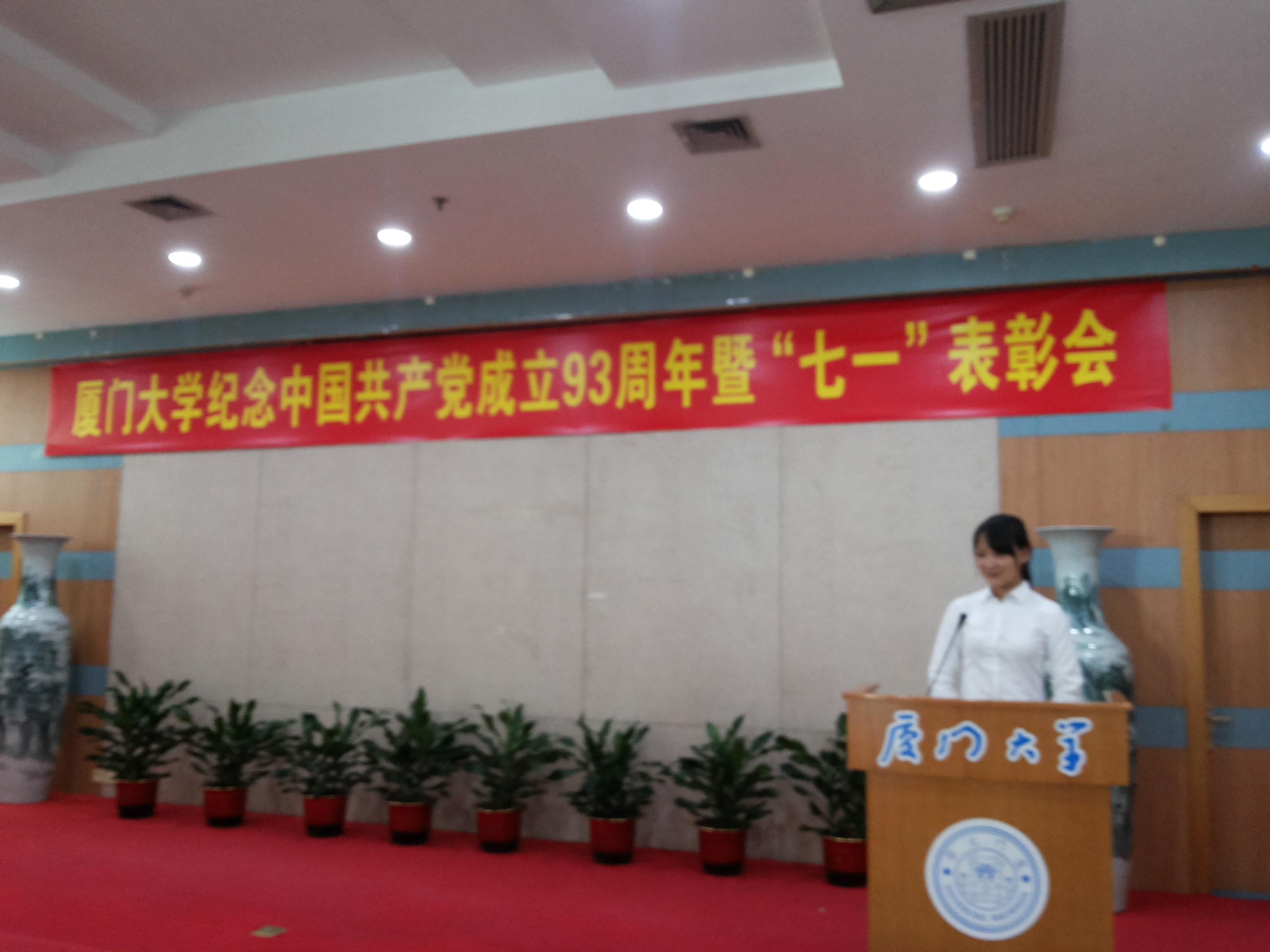 7月1日,学校庆祝中国共产党成立93周年暨“七一”表彰会在颂恩楼220会议室举行。会议重温了党的光荣历史,回顾了党的丰功伟绩,表彰了一批先进集体和优秀个人。我院信息与计算数学系2011级本科生党支部张小辰作为获奖代表在大会上做交流发言,对党支部两年以来的先进事迹与成绩做了汇报。