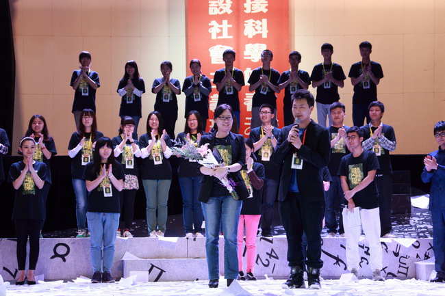 演出结束后,全部主创人员在导演王根的带领下一一自我介绍,再次引爆全场热情,特别是当由昆女士登台发表感言时,全场更是给予最热烈的掌声。由昆表示,厦门大学是先生的母校,是这里的恩师给他打下了很好的基础,自己对厦门大学有着特别的情愫。感谢所有为《哥德巴赫猜想》付出辛劳的人们。她眼含热泪、语带哽咽地说,“真诚地谢谢大家用心的演出,看着这一幕幕场景,我真的觉得先生又回到了我的身边,谢谢大家。”