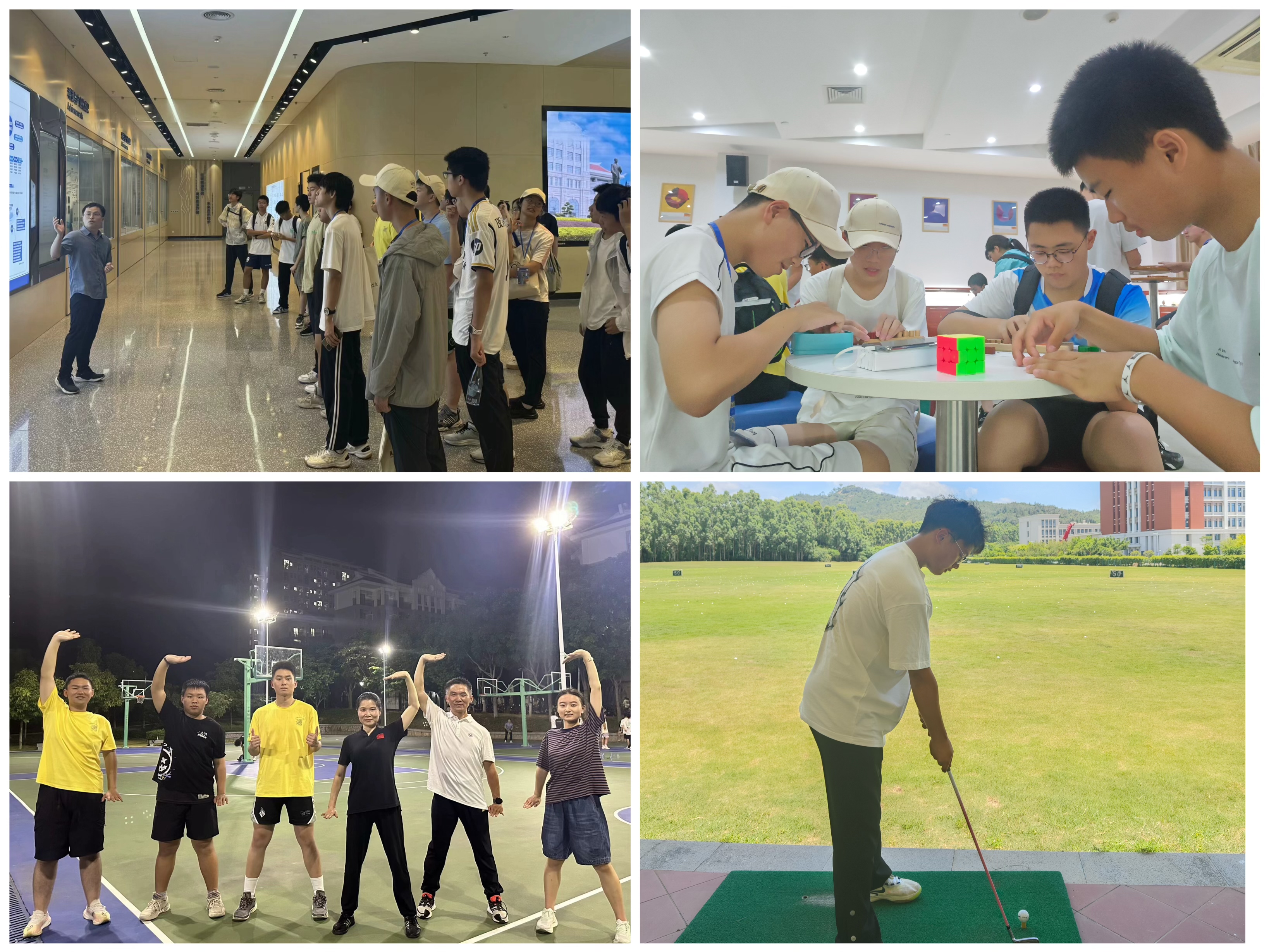 营员在思明校区的校史馆、革命史馆等地领略厦门大学自强不息、止于至善的精神内涵,感受“南方之强”的坚守和担当;在陈景润科学精神教育基地领略陈景润波澜壮阔、充满传奇色彩的一生。营员在翔安校区的智力玩具专题博物馆体验趣味数学玩具,锻炼逻辑思维与空间想象能力;在嘉庚实验室零距离参观了先进的实验仪器设备;在高尔夫球场中学习感受高雅项目“高尔夫”,在林鹭老师的带领下体验传统文化八段锦。