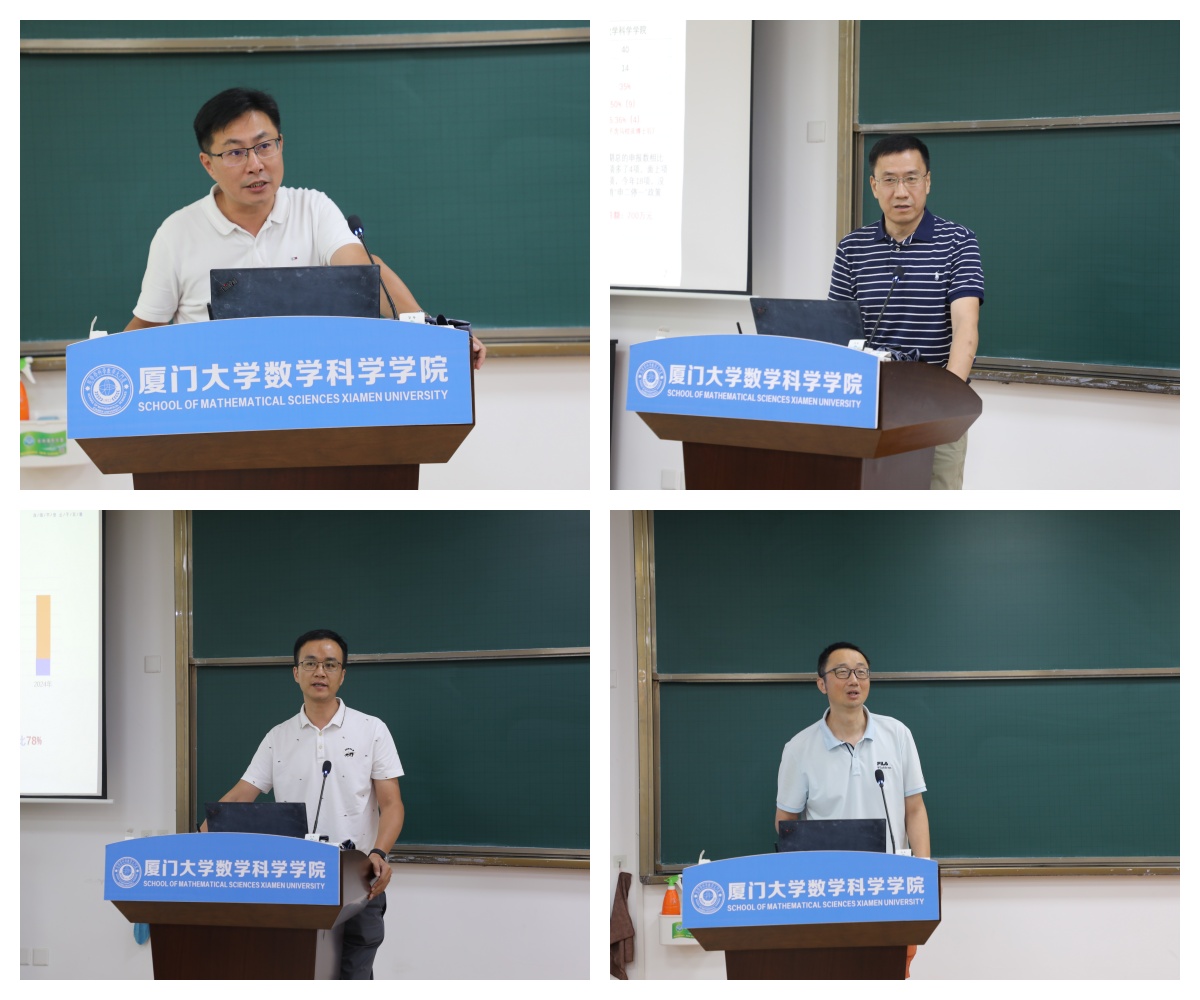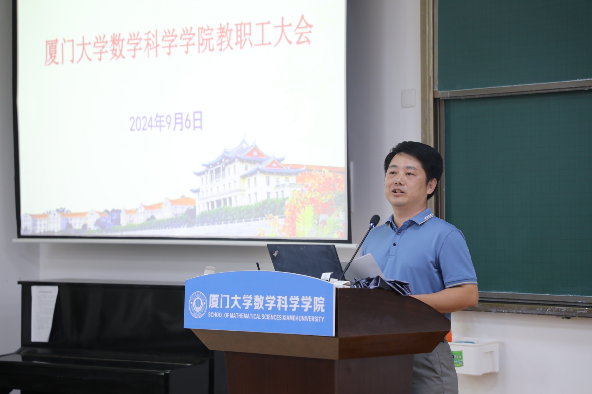 谭绍滨院长简要回顾了学院2023-2024学年行政工作,报告了2024年1月以来财务情况,部署了新学年重点工作。他肯定了学院在人才培养、学科建设、师资队伍建设、科学研究、国家天元数学东南中心和福建省高校数学学科联盟等方面工作取得的成效,分析了学院建设发展中存在的不足,强调要进一步加大人才引培工作力度,优化师资队伍结构;要进一步提升人才培养质量,提高本科毕业生升学率,争取更多研究生优质生源;要进一步挖掘中青年教师的科研潜力,主动争取高层次人才项目,关注重点研发项目,不断提升科研质量和水平;要齐心协力建好国家天元数学东南中心和福建省高校数学学科联盟,发挥辐射带动作用,更好地服务东南片区数学学科发展。他要求,要开源节流,勤俭办学,依法依规用好经费,提高经费使用效益。要坚持财务公开,自觉接受广大师生员工监督。