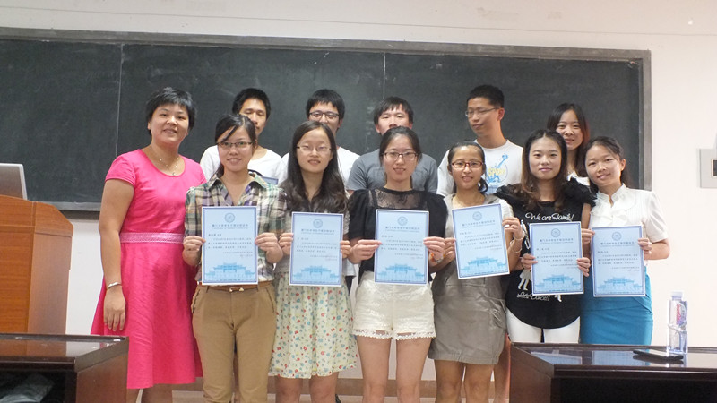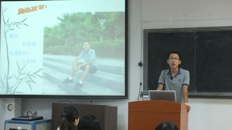 2013年9月27日,厦门大学数学科学学院研究生会主席团换届选举大会于上午10:30在海韵实验楼105室举行。团委书记黄兆君老师出席了本次会议。会议分三个议程进行,首先由研究生会主席王娟对前一学年的研究生会工作进行了总结汇报。接着由黄兆君老师向本届研究生会主席团成员、各部门部长、副部长颁发证书,表彰他们过去一年努力和付出。第三议程选举新一届研究生会主席团,四位候选人封利波、林文森、罗桂霞和万琴分别上台做精彩的竞选演讲,12级和11级研究生通过不记名投票的方式选举产生了新一届研会主席团成员。