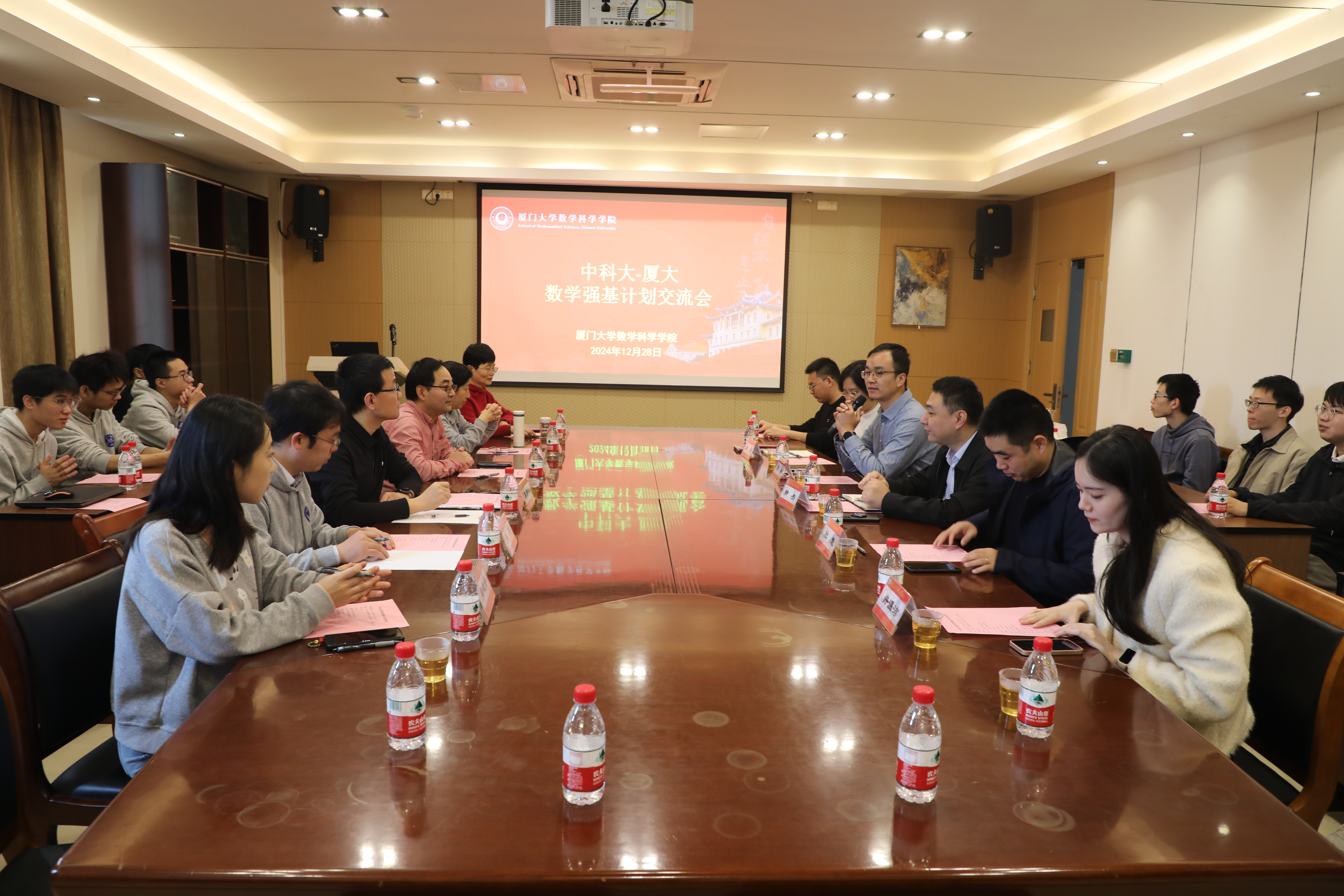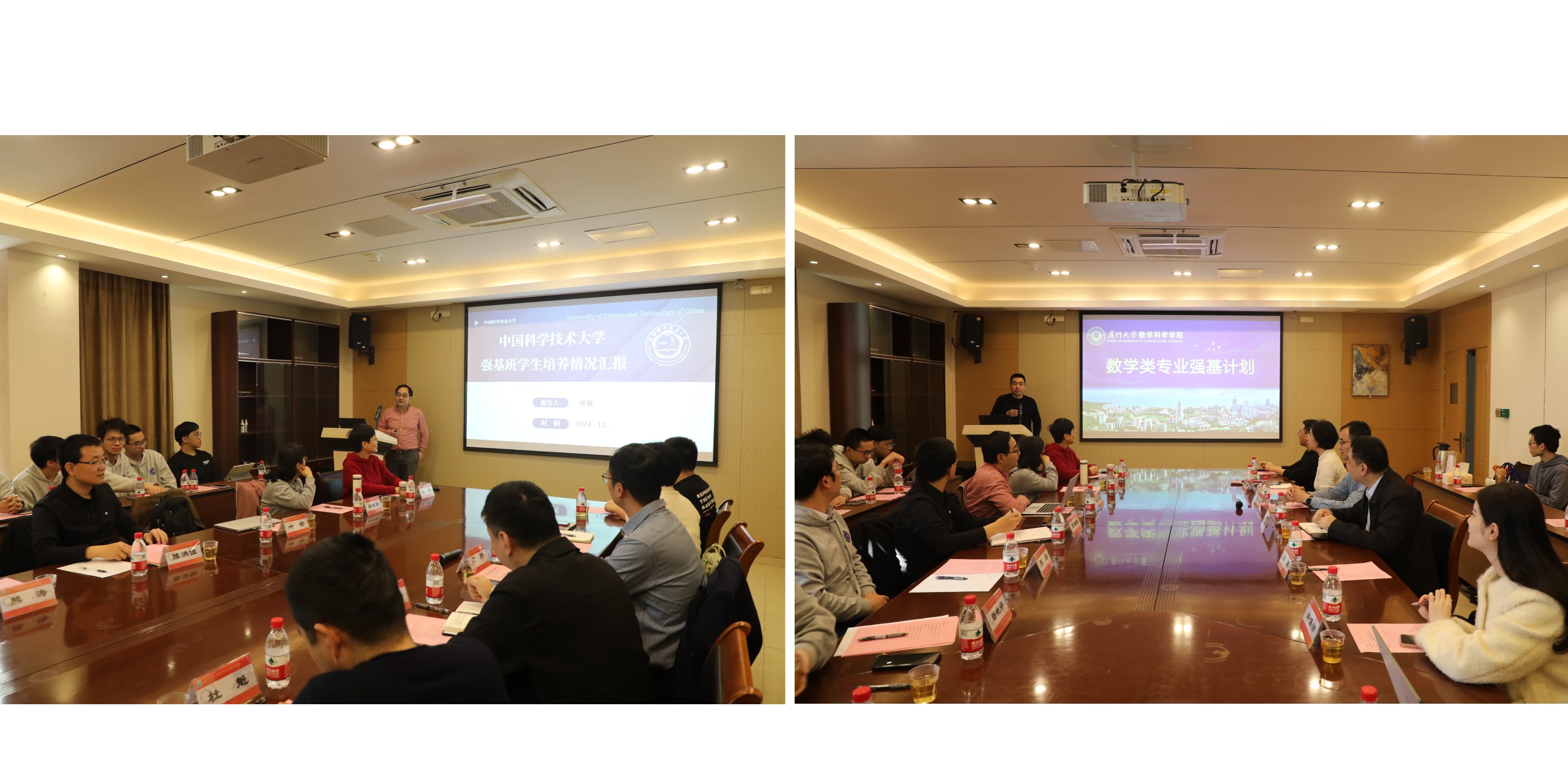 宋翀副院长对来访的中国科学技术大学师生表示热烈欢迎,希望以此机会密切双方的交流与合作。随后,两院强基班负责人叶郁教授和杜魁教授分别介绍了各自学院的数学强基计划培养方案和人才培养成效。双方就强基计划人才培养机制、课程设置等方面进行了深入交流。