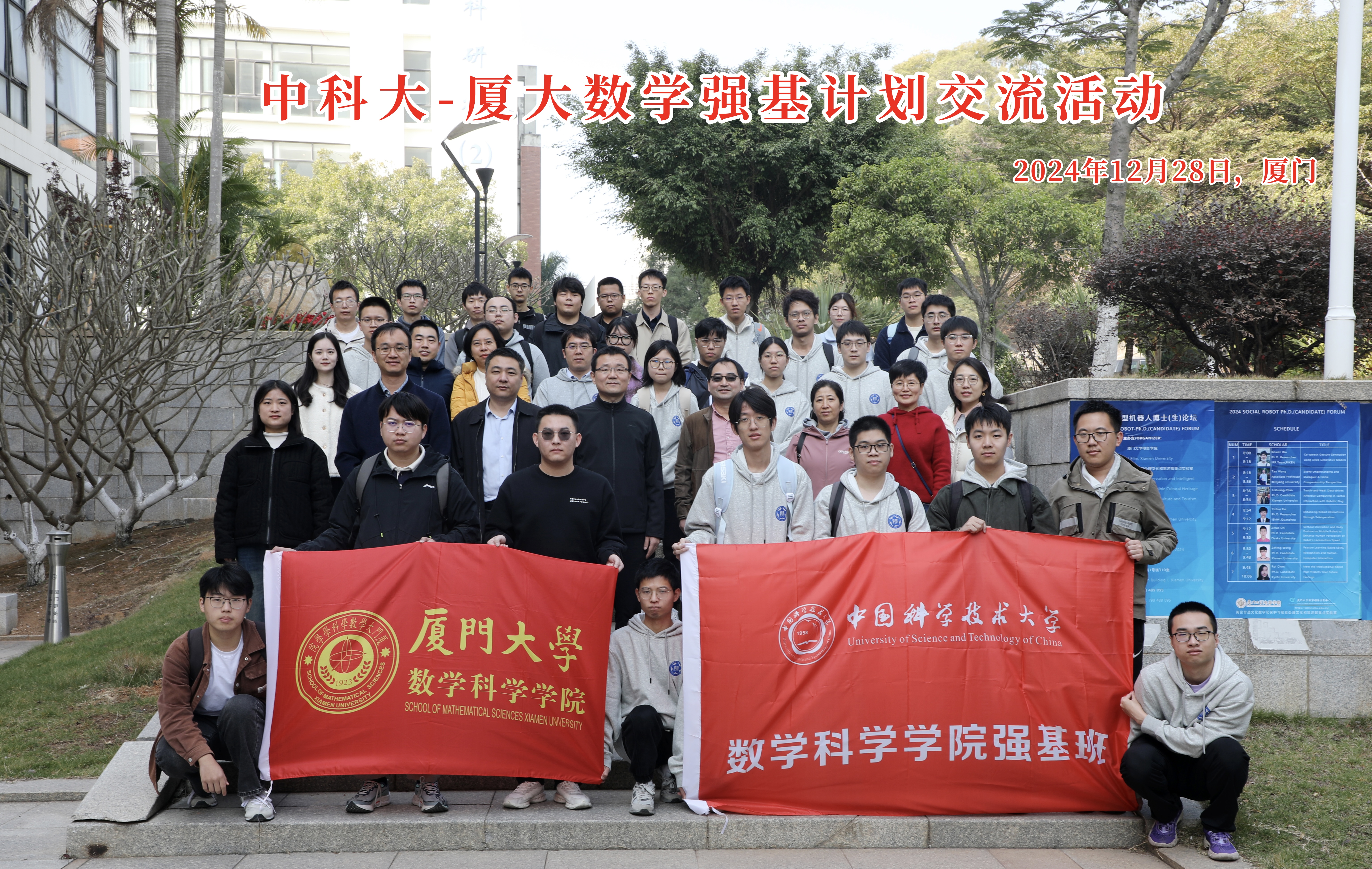 12月28日上午,中国科学技术大学教务处副处长陈洪佳、数学科学学院强基班负责人叶郁等教师代表,带领2021级强基班学生到学院交流座谈。座谈会在学院行政楼C610会议室举行,我校教务处副处长钟杰、数学科学学院副院长宋翀和强基计划工作组教师代表、以及2021级强基计划学生参加此次座谈。