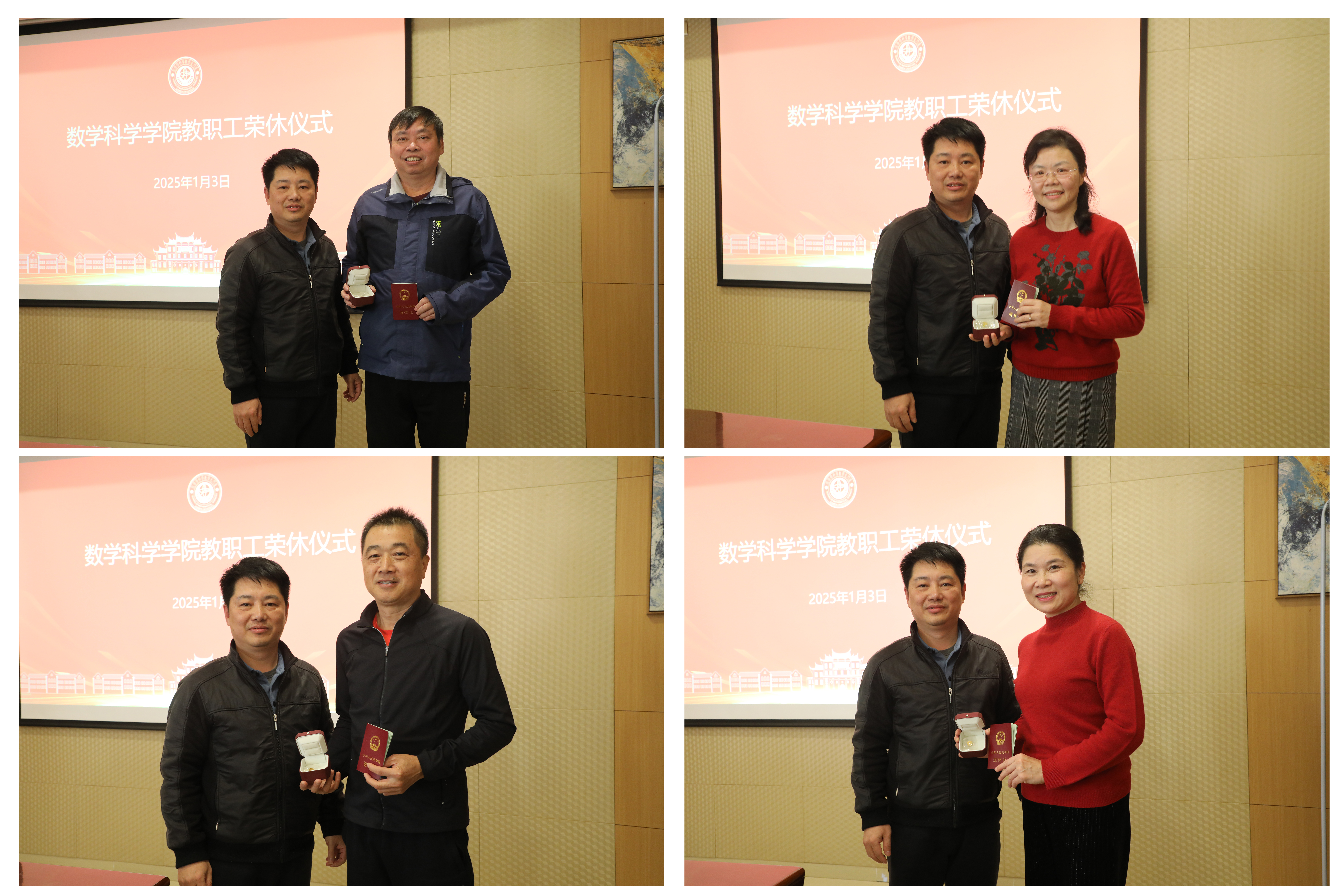 2025年1月3日下午,学院在海韵园林觉世楼C610为庄平辉、林鹭、程立新、伍火熊、林玉闽、王坚勇6位老师举办荣休仪式。学院党政领导班子、工会主席、系主任、教职工代表以及人事处工作人员共同见证这一温馨时刻。荣休仪式由副院长朱玉峻主持。