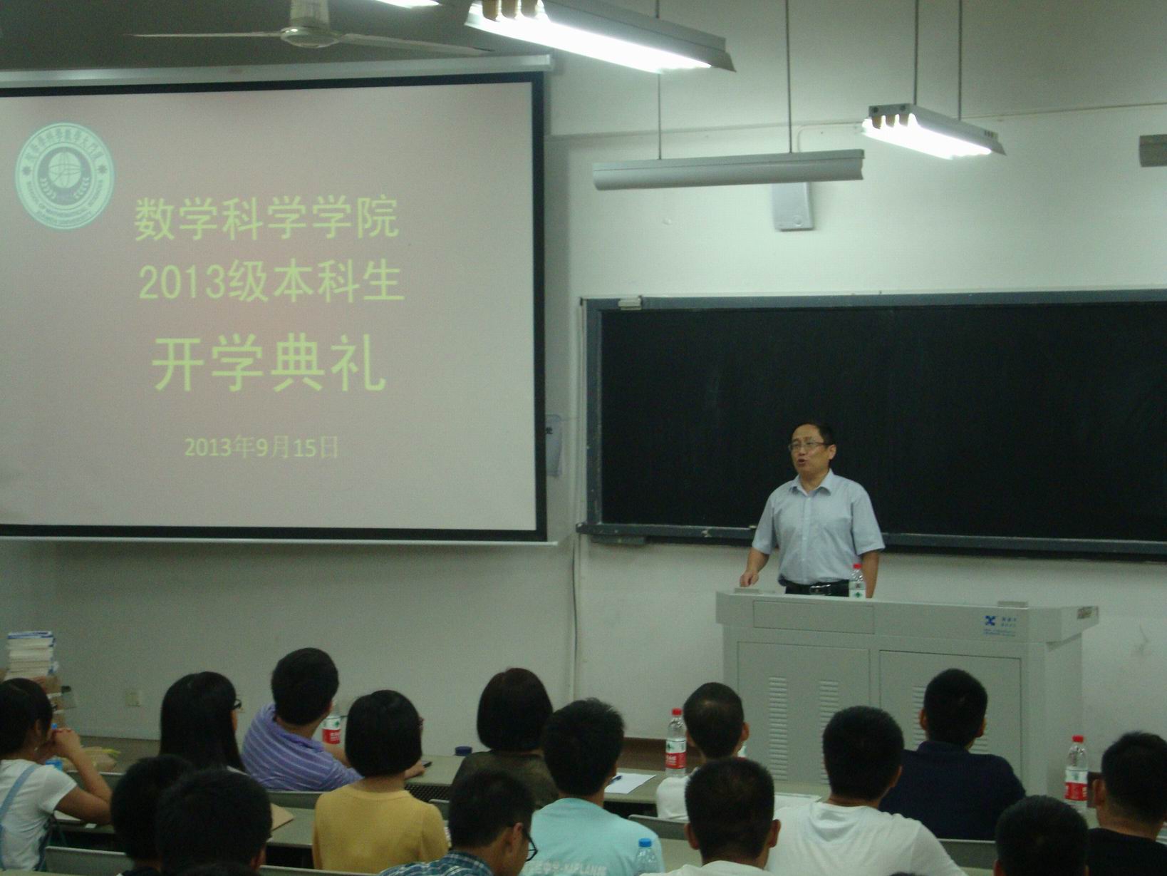 院长林亚南教授首先发言,代表学院对2013级新同学的到来表示欢迎,他希望新同学重视学习,努力去认识数学,不要放松。同时,他讲到大学数学与高中数学的不同,要求同学们要有吃苦的精神。他还提醒同学们要改变学习方式和习惯,做到不懂就问,问题及时解决,不要拖延累积。最后,他希望同学们立下远大志向,并从小事做起,脚踏实地。