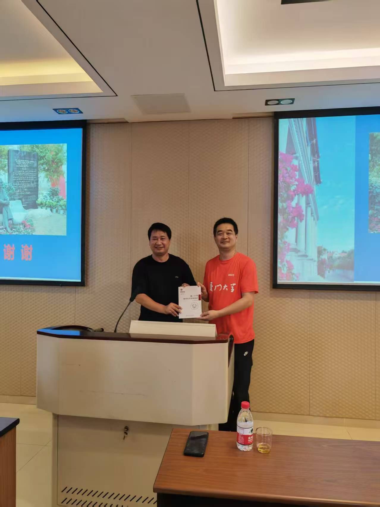 5 月 10 日下午,一场承载着往昔岁月的主题班会在海韵园林觉世楼温情开启。主题班会由1986级校友马健文主持。活动伊始,校友们共同观看了厦门大学数学学科百年宣传片,回顾学科发展历程与辉煌成就。数学科学学院党委副书记毛通双代表学院向校友们致以热烈欢迎,并介绍了学院在人才培养、科研创新、校友工作等方面的新进展,感谢校友们长期以来对母校和母院的关心与支持。学院还特别向校友们赠送了《厦门大学数学科学学院院史》,以作纪念。