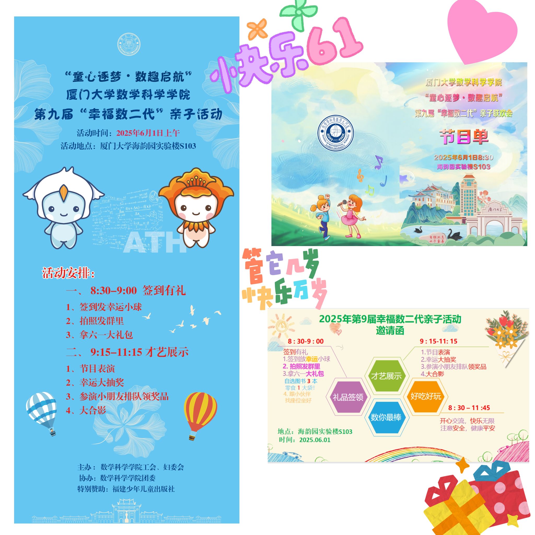 在凤凰花开的六月,厦门大学数学科学学院迎来了一场别开生面的亲子盛会。在学校工会、学院党委关心支持下,在学院工会、妇委会及团委精心组织下,我院第九届"幸福数二代"亲子联欢会在6月1日如约而至。这场以"童心逐梦·数趣启航"为主题的欢乐派对,不仅为孩子们搭建了展示才艺的舞台,更成为连接亲子情感、传承学院文化的温馨纽带。