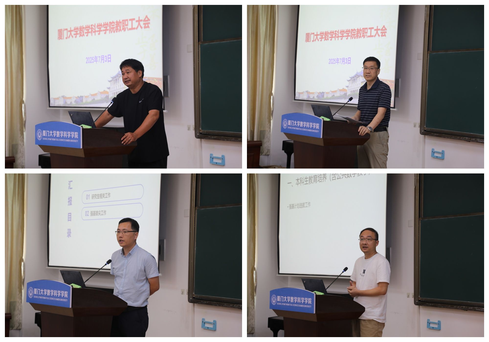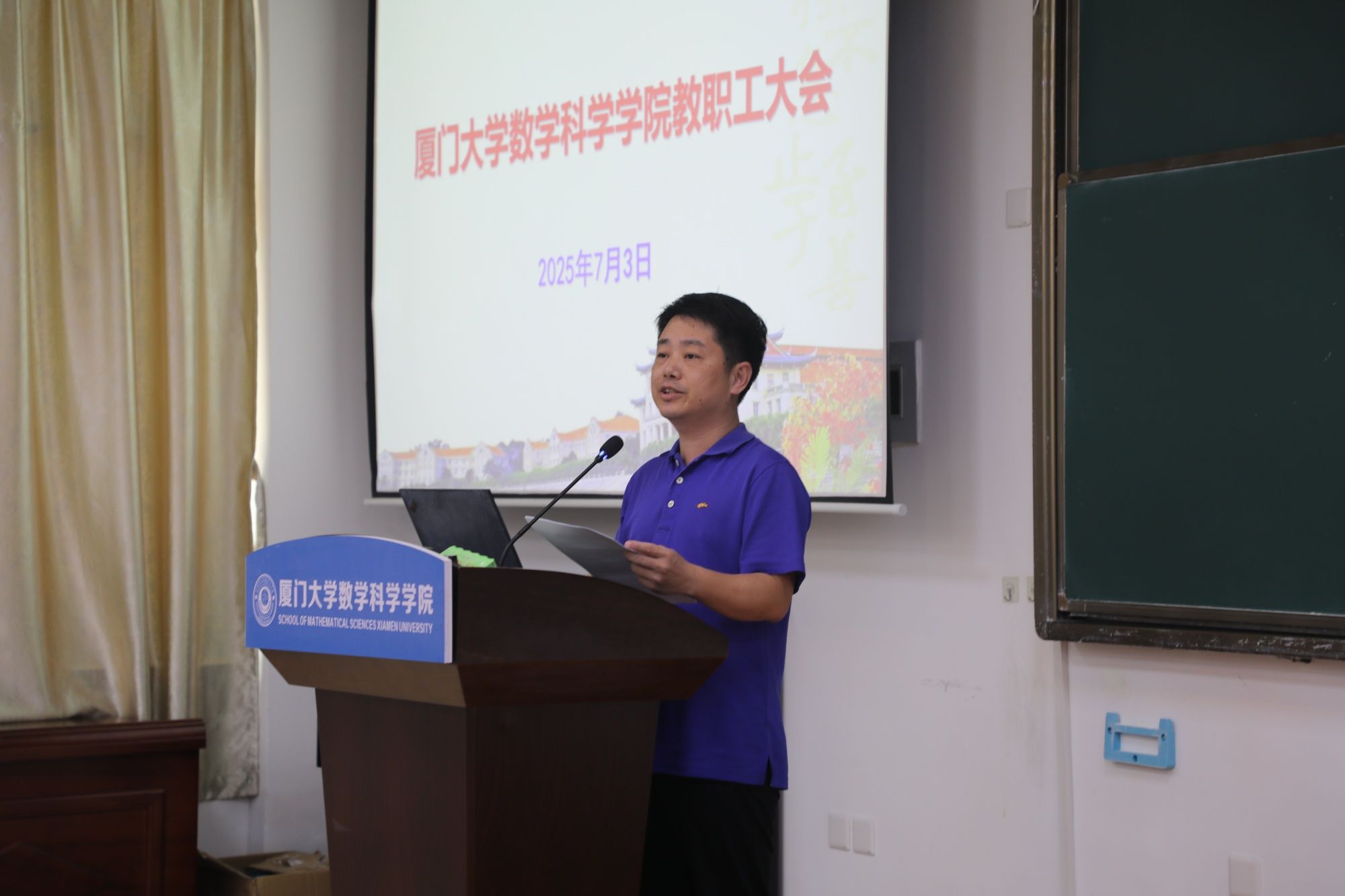 2025年7月3日下午,学院在实验楼S103报告厅召开教职工大会,通报部署相关工作,民主推荐各系及公共数学教学部主任人选,学习国家宗教政策法规。学院党政领导、工会负责人和教职员工参加会议,院党委书记张清榕主持会议。