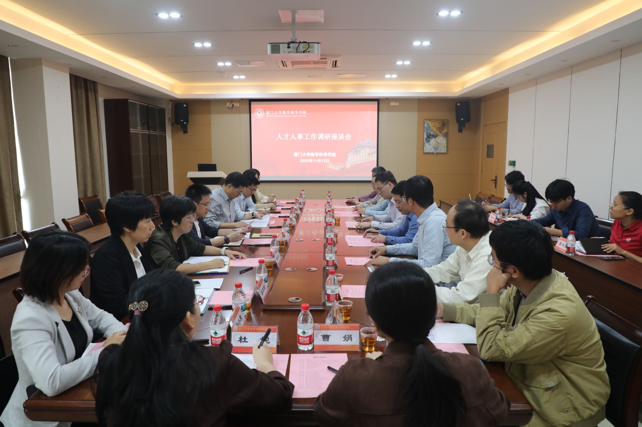 11月13日上午,史大林副校长带队赴数学科学学院,就人才人事工作进行专项调研。校长助理、人事处处长兼党委人才办公室副主任谢兆雄,人事处副处长李承华、柯自聪,干部保健办公室主任蔡莉莉等陪同调研。数学科学学院党委书记张清榕,院长夏超,副院长宋翀、陈黄鑫、周达,教授委员会主任,系主任,专任教师代表等参加调研会。调研会由宋翀主持。